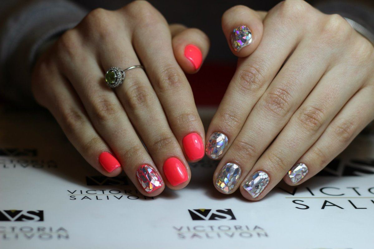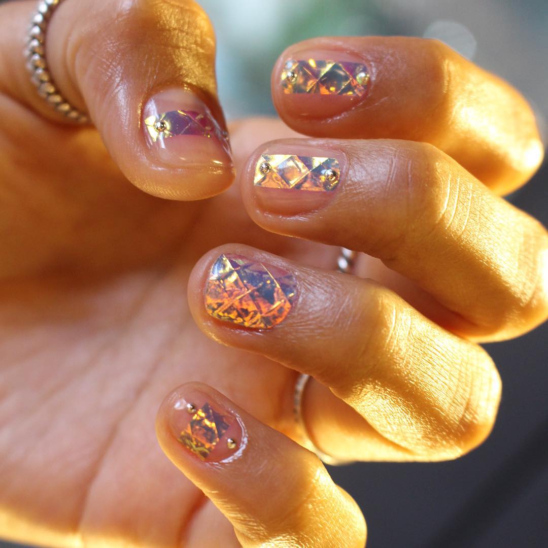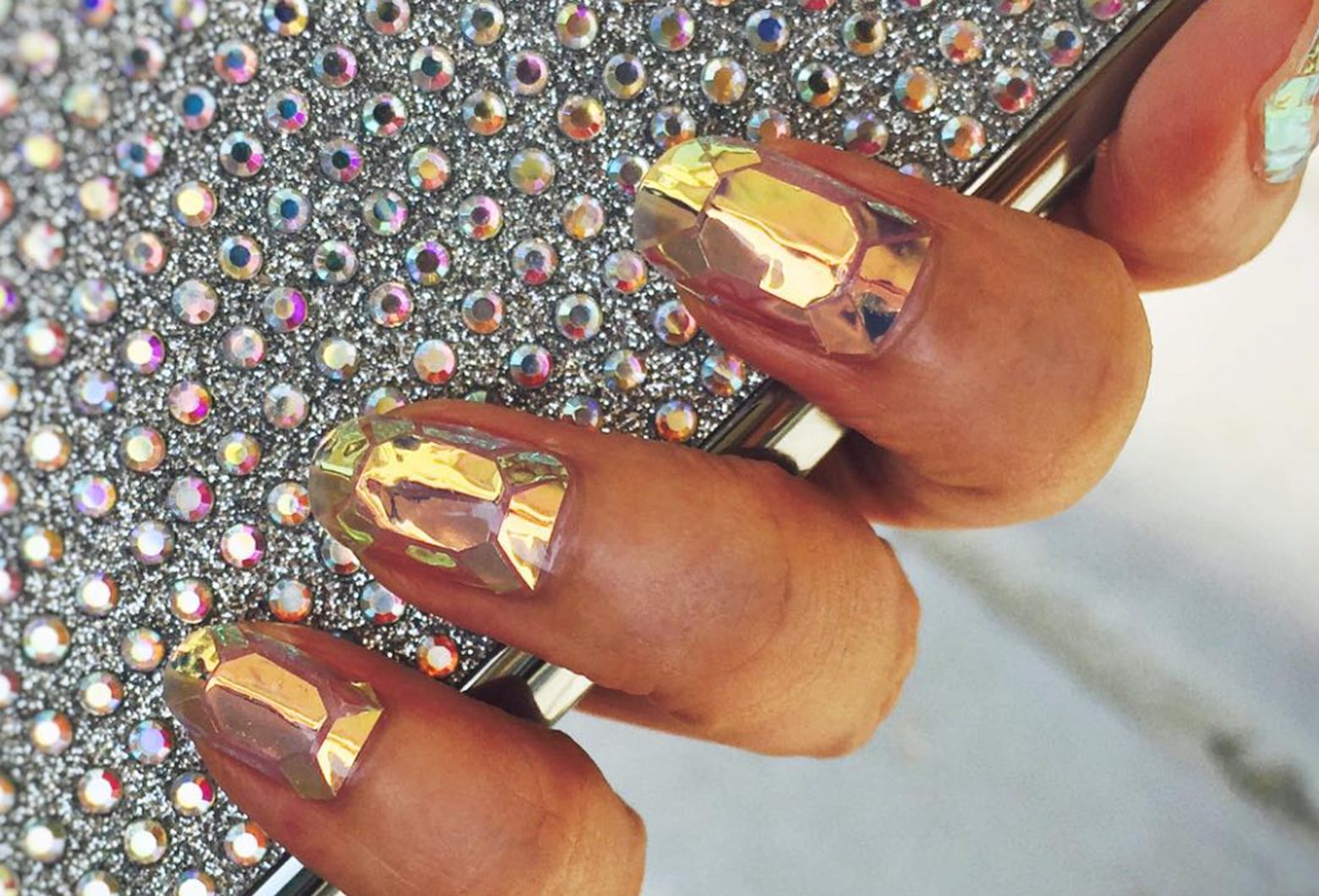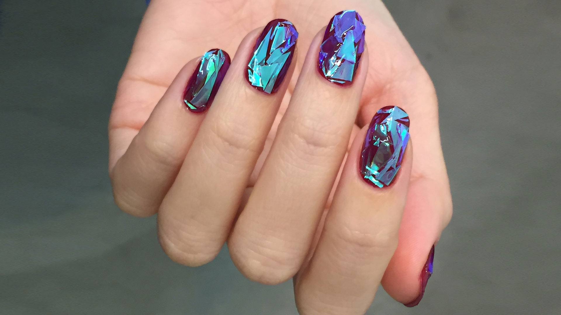 Manucure "verre brisé". Fragments d'ongle spectaculaires