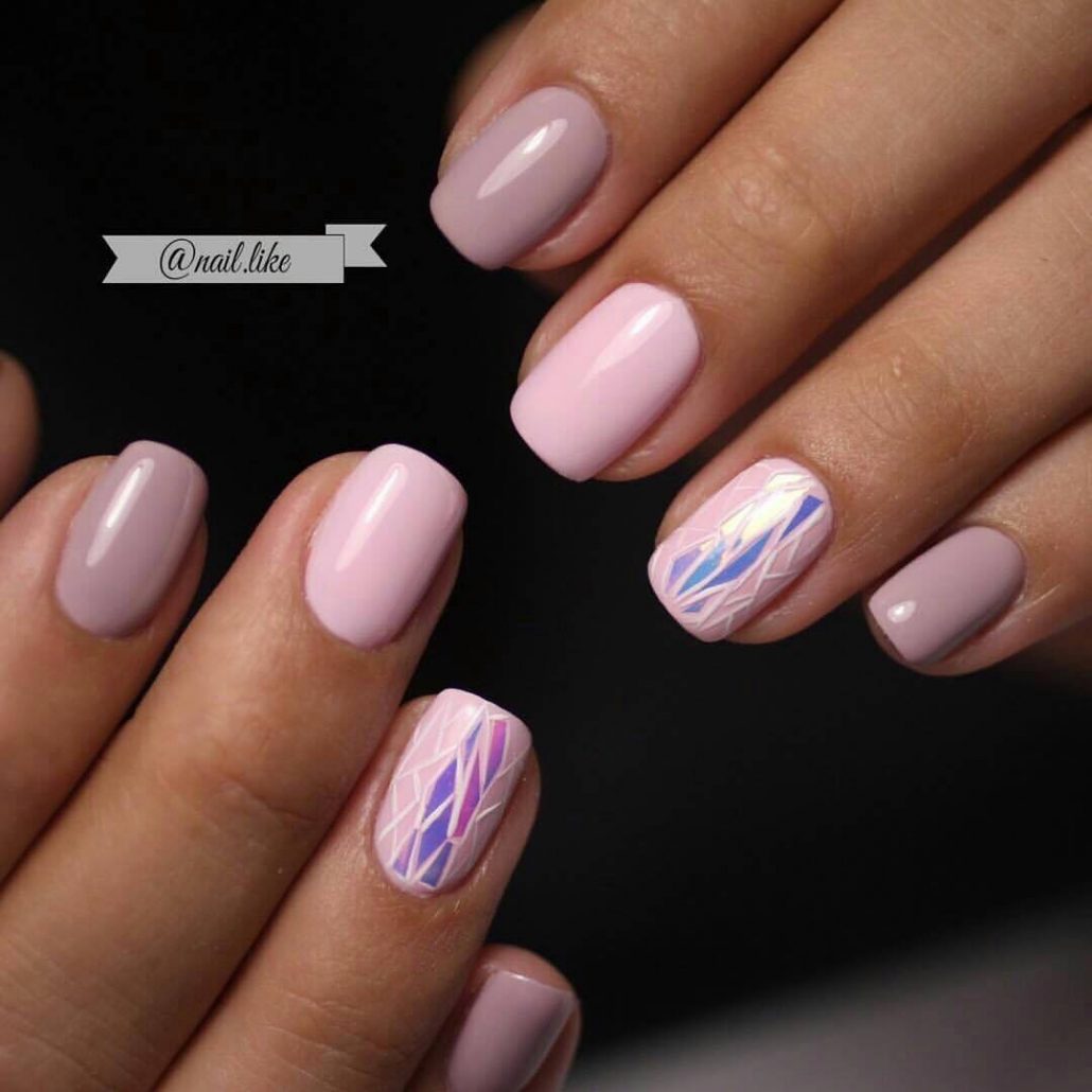 L'effet de scintillement sur les ongles est possible en raison de la réflexion des rayons lumineux provenant du matériau utilisé. Extérieurement, cela ressemble à un kaléidoscope. Par conséquent, la conception de «verre brisé» est particulièrement recherchée par les fans du style fantastique. Une telle conception sera particulièrement populaire en été, car l'abondance de lumière attirera l'attention des autres autour d'elle.
