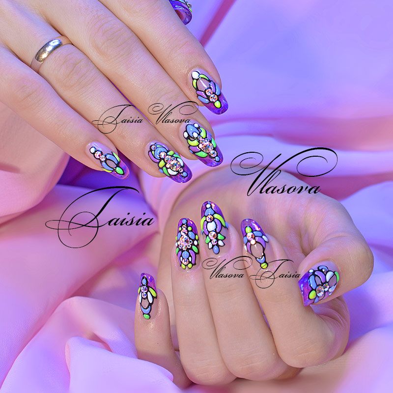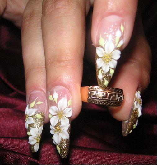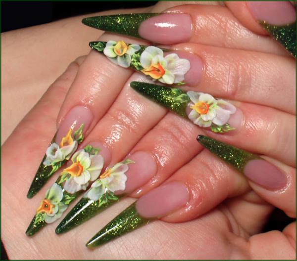 Une bonne option pour une manucure de fête est le dégradé. Tout d’abord, appliquez un revêtement blanc afin que le clou ne brille pas et travaillez au-dessus de chaque clou avec la technique du dégradé, qui peut être appris dans les ateliers proposés. Pour rendre la conception plus intéressante et plus festive, couvrez vos ongles avec un dessus de sable en une couche. En manucure, l’accent peut être mis sur l’un des doigts sous la forme d’une délicate fleur en silicone, vendue dans les magasins de nail art. Le décor en silicone est installé sur le revêtement des ongles à l’aide d’une colle spéciale pour la manucure. Le séchage des gels lustrés ne retient pas les éléments en silicone. Le décor est soigneusement collé, patiemment, en appuyant chaque coin sur le clou. Cela vous permettra de marcher plus longtemps avec une belle manucure printanière. Pour imposer un décor au décor, par exemple, coller des strass ou des perles sur les fleurs en silicone, vous devez découper soigneusement la couche supérieure du décor en silicone et accrocher l'élément brillant à cet endroit.
