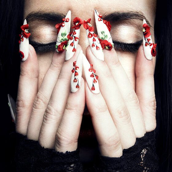 Manucure rouge: l'image d'une femme vampire le 8 mars