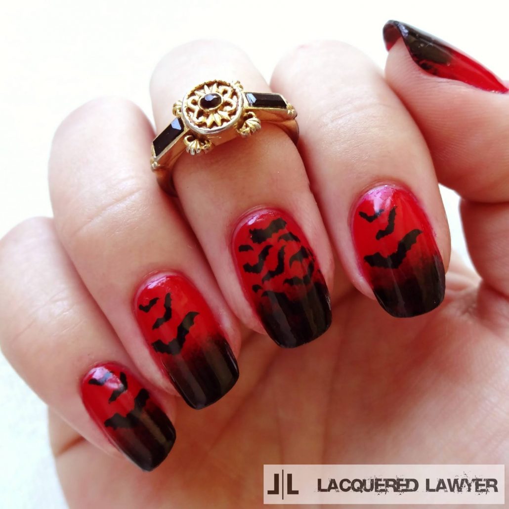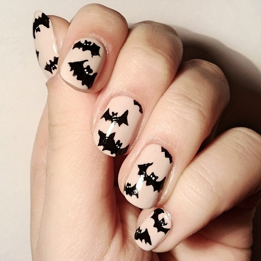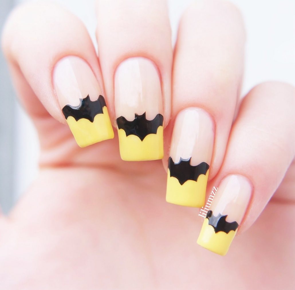 Ces créatures sont également capables d'être à la fois mignonnes et méchantes. Dans ce cas, plusieurs souris complètement différentes peuvent être combinées dans une manucure. Vous pouvez appliquer une image de chauve-souris à n’importe quel dessin d’ongle. Ils fonctionnent bien avec une veste ou une manucure dans le style ombre.
