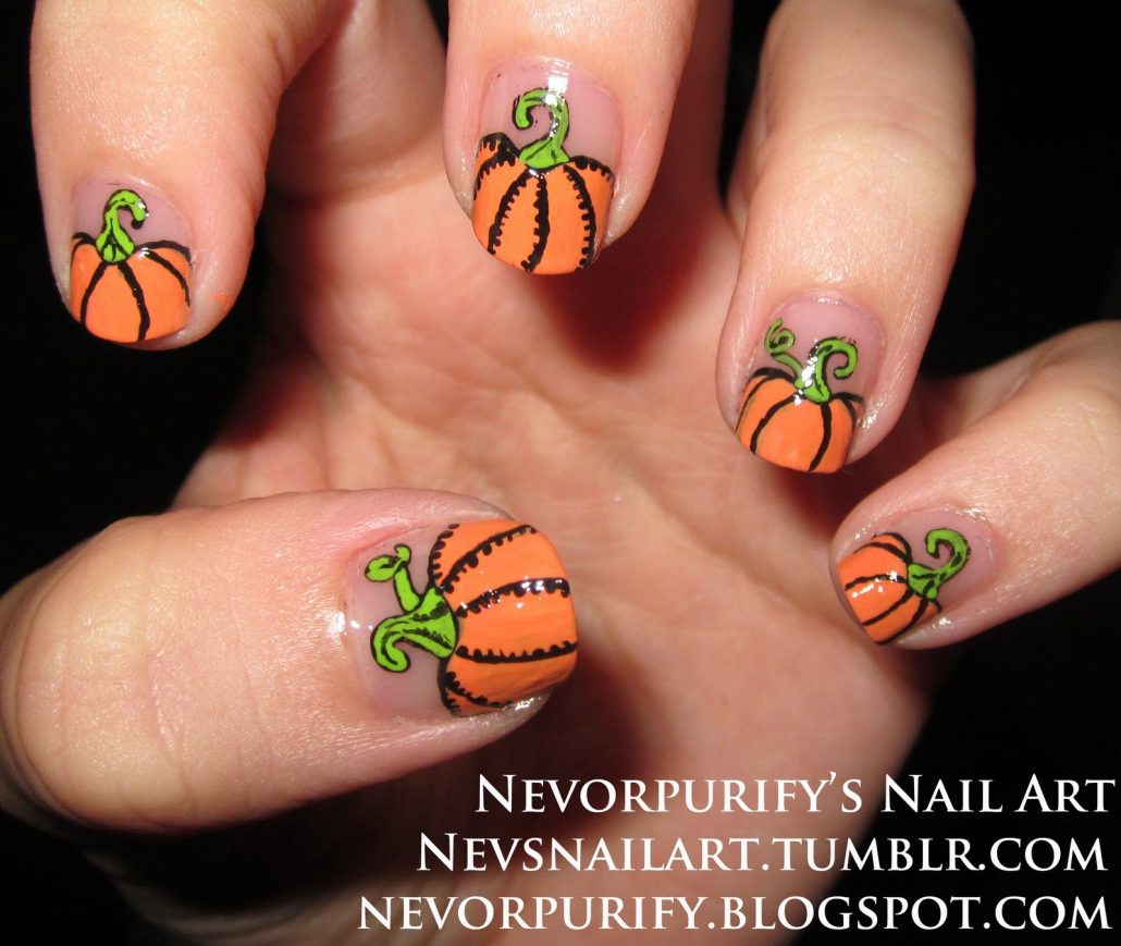 La citrouille peut décorer 1-2 clous ou le dessiner sur chaque clou. Cependant, ils ne doivent pas être intimidants. Citrouille de vacances peut sourire drôle ou même wink. Il peut être combiné avec d'autres attributs de vacances (toiles d'araignées, crânes, etc.) dans une manucure.