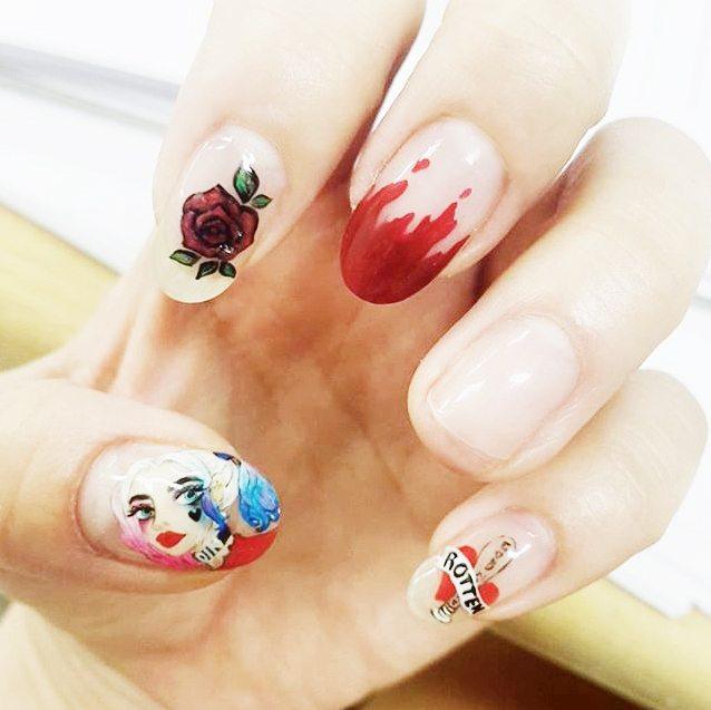 De plus, il n'a pas besoin d'être sombre et intimidant. Votre tesson est capable de sourire adroitement et gentiment ou même de cligner des yeux. Une manucure peut être complétée par l’image de fleurs, d’arcs ou d’autres choses mignonnes.