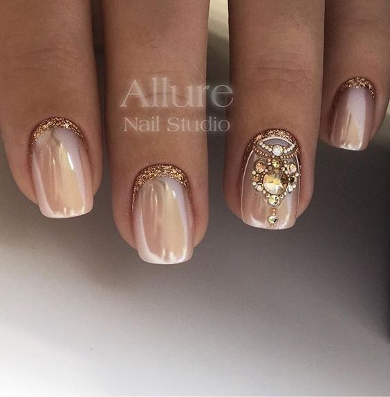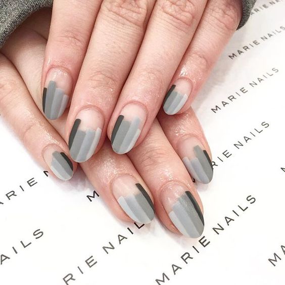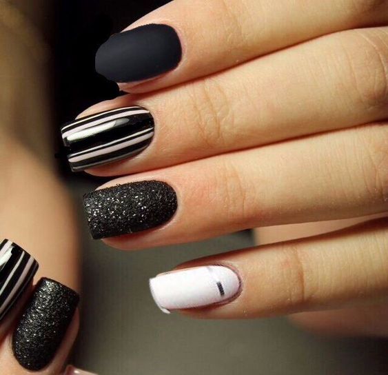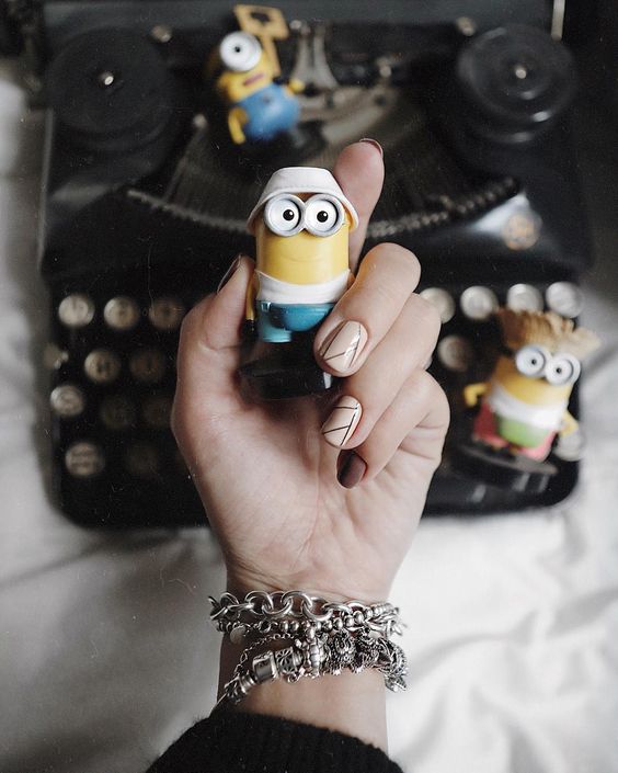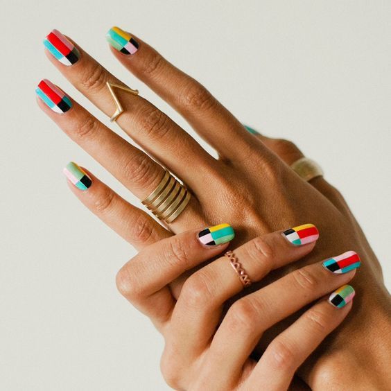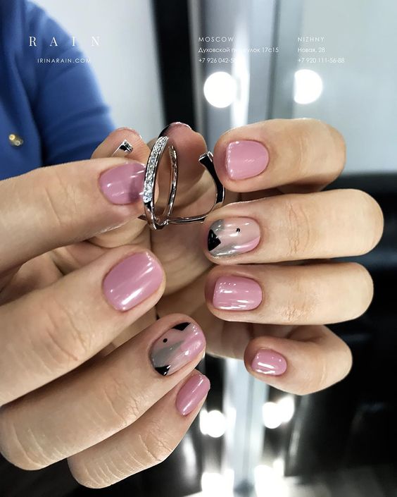 En outre, l’un des manucures populaires pour les ongles courts cet automne sera un motif coloré. C'est à ce moment que chaque ongle est peint dans une couleur individuelle différente et possède son propre motif distinct et unique. Mais si vous pensez que cette option est trop brillante, appliquez un vernis brillant sur un seul ongle. Utiliser du papier d'aluminium dans la conception des ongles cette saison ne sera pas non plus superflu. Des impressions, des rayures, des zigzags sur tous, plusieurs ou un seul clou complèteront votre manucure en septembre.