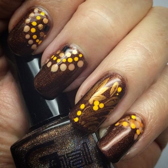 Est-il possible de se passer des dessins d'automne sur les ongles en septembre? Les dessins à thème restent également à la mode, ce qui permet de créer des images entières. Celles-ci peuvent être des images de fleurs, feuilles, animaux, des images de pluie et des parapluies.En utilisant cette conception de clous cet automne, vous serez la fashionista la plus pertinente de la saison. Toujours dans la liste des dessins les plus en vogue de septembre, les dessins utilisant des formes géométriques sont en tête. En expérimentant avec des couleurs et une combinaison de formes, vous obtenez le design le plus en vogue.