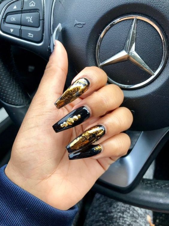 Pour commencer, la forme de la plaque à ongles cet automne est la longueur moyenne, voire plus courte, de la forme naturelle, ou un carré arrondi. Mais qu'en est-il des fashionistas qui préfèrent une forme allongée d'ongles? Tout est en ordre - les ongles longs et pointus seront également à la mode et en demande cette saison. En septembre, il ne sera pas superflu d’utiliser diverses pierres, paillettes et strass sur de longs ongles. Vous pouvez rêver avec de la poudre acrylique et du papier d'aluminium.
