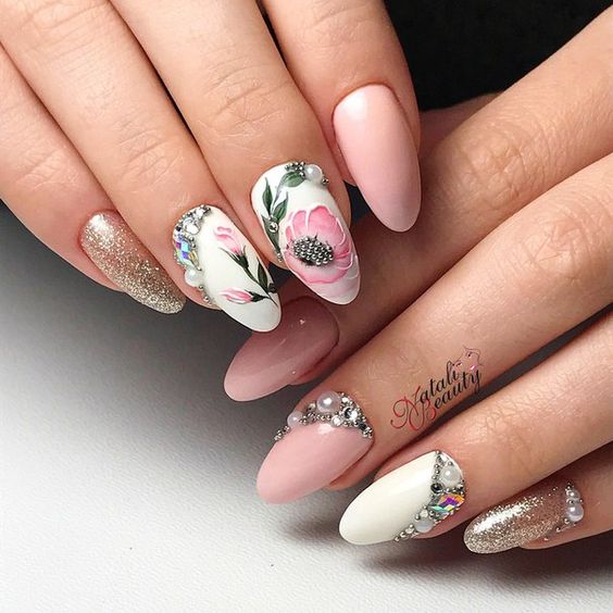 Manucure de remise des diplômes avec strass: nouveautés et idées insolites