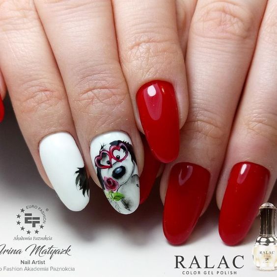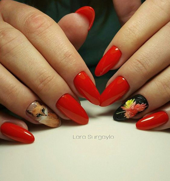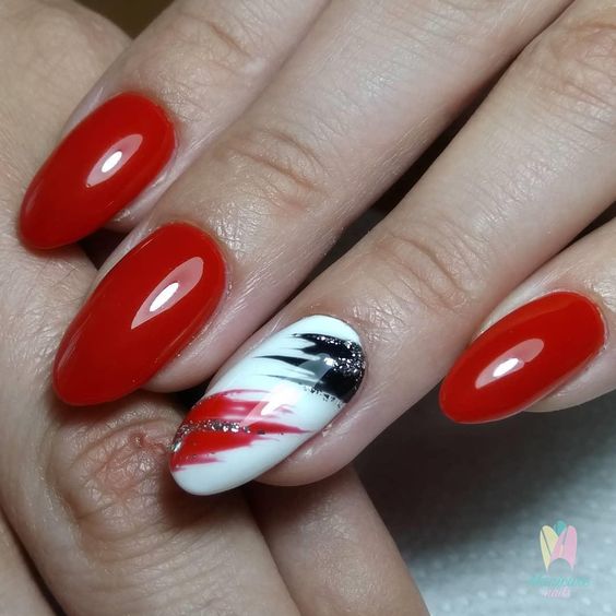 Si vous êtes une femme brillante et extraordinaire, optez pour une manucure rouge ultra-tendance et brillante. Les designers cette saison recommandent d’utiliser toutes les nuances de rouge. Vos ongles peuvent être bordeaux aristocratiques ou rouges juteux. Une telle manucure devrait être avec un minimum de décor. Option - quelques strass ou un dessin original et discret sur un ou deux ongles. La couleur rouge sans aucun ajout est belle, lumineuse et autosuffisante. La combinaison avec la couleur noire plus foncée du vernis est intéressante et très élégante sur les ongles rouges.