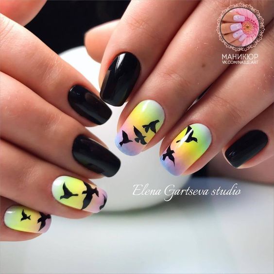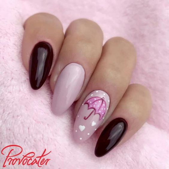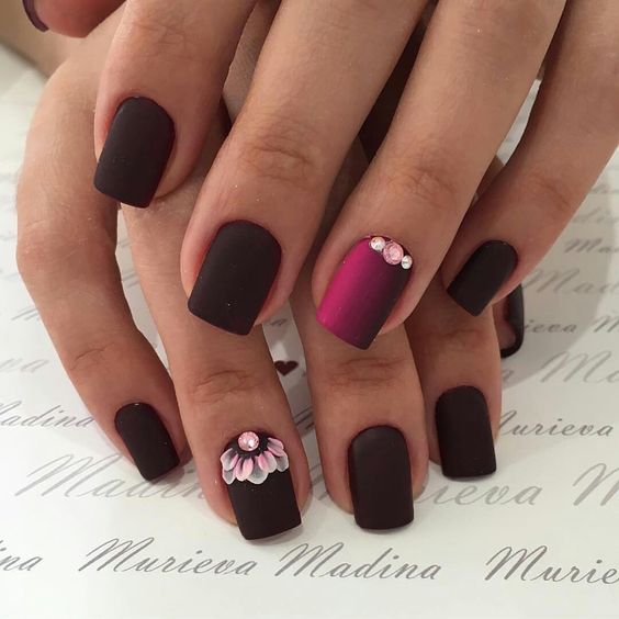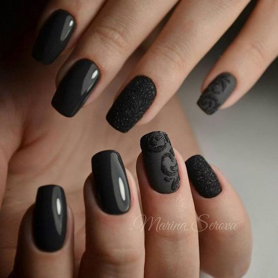Une autre alternative aux couleurs pastel en 2026 est le noir. Les stylistes par temps froid en 2026 proposent de décorer les ongles avec du noir ou du vernis à proximité. Imaginez une manucure dans la couleur pourpre sombre du ciel nocturne.Si vous effectuez une combinaison intéressante sur vos ongles, diluez une manucure sombre, appliquez du vernis à ongles de couleurs pastel neutres sur un ou deux ongles tout en les décorant avec un petit motif en vernis foncé.
