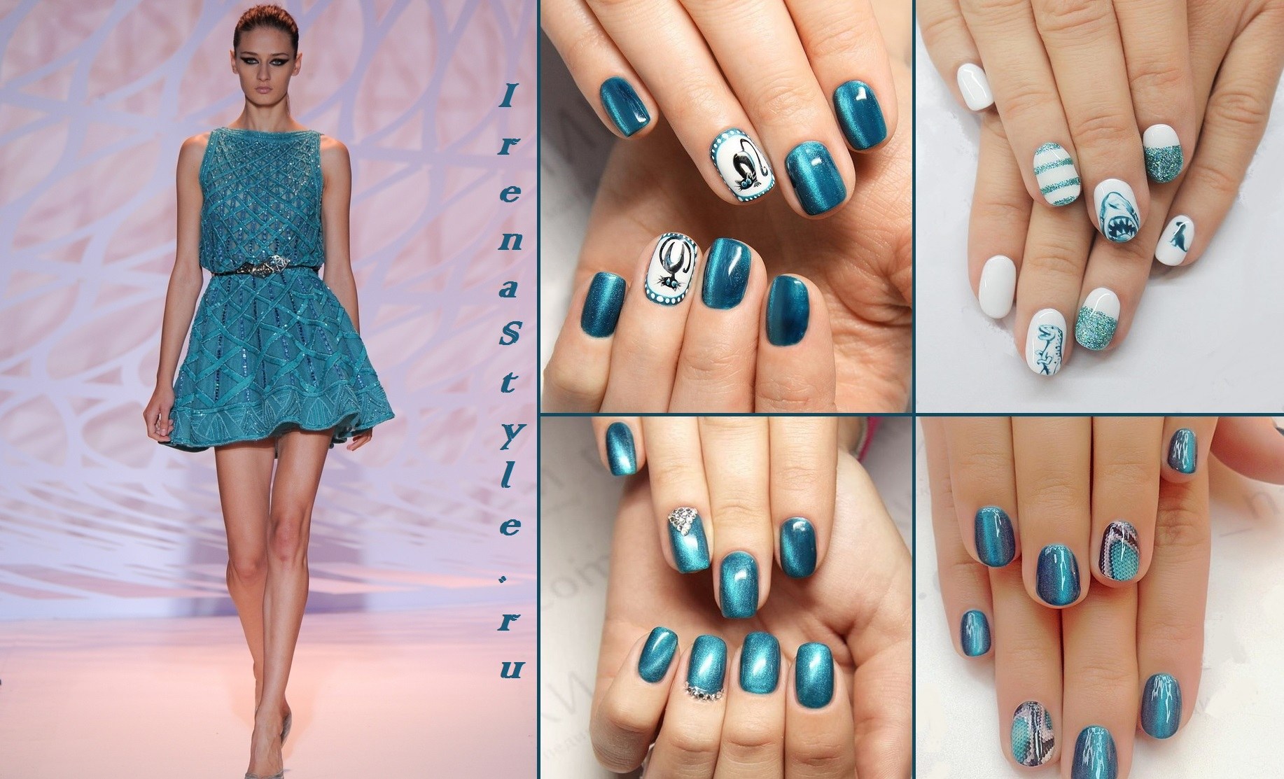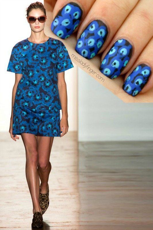 - Manucure sous une robe bleue