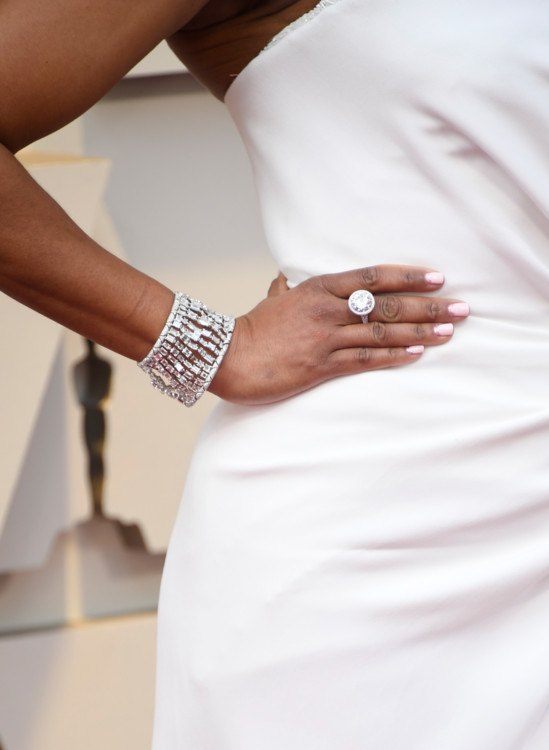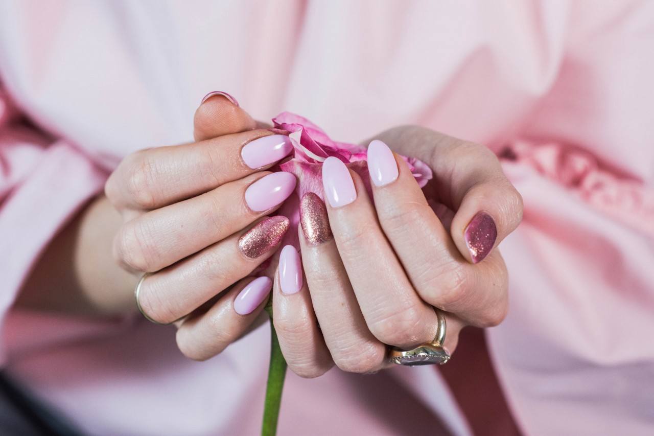 Manucure sous une robe à paillettes