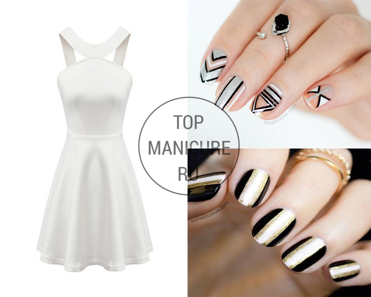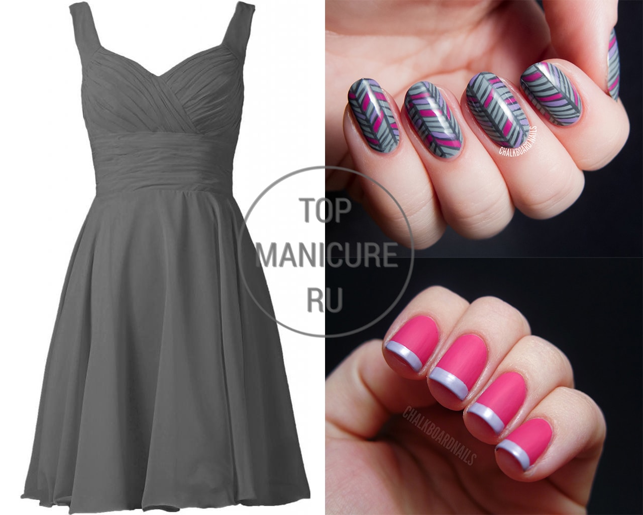 La manucure est l’un des éléments importants du look à la mode de chaque fille. C'est pourquoi presque toutes les beautés visitent une manucure. Un ouvrier professionnel dans n'importe quel salon sera capable de choisir correctement la forme et la couleur des ongles pour un style de vêtement différent. Lorsque vous faites une manucure, vous devriez toujours vous demander quelle forme de vêtement le client préfère et à quelle occasion le nail art est fait. Après tout, vous devez admettre que les tons brillants et saturés de la couche de souci ne s’adaptent pas à toutes les couleurs de la garde-robe. Par conséquent, nous proposons aujourd'hui de discuter du type de manucure à utiliser pour créer des nœuds pour dames à la mode avec une robe.