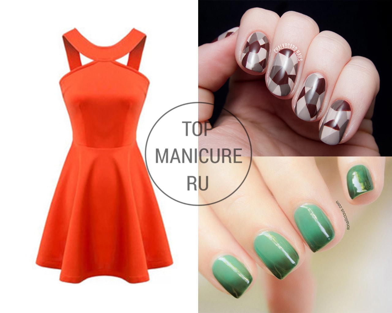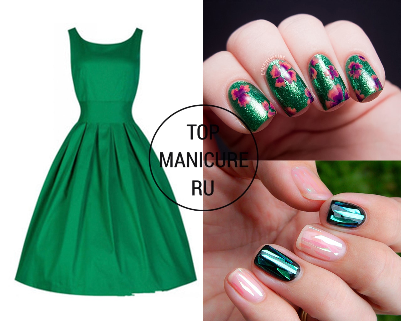 - Manucure sous une robe verte
