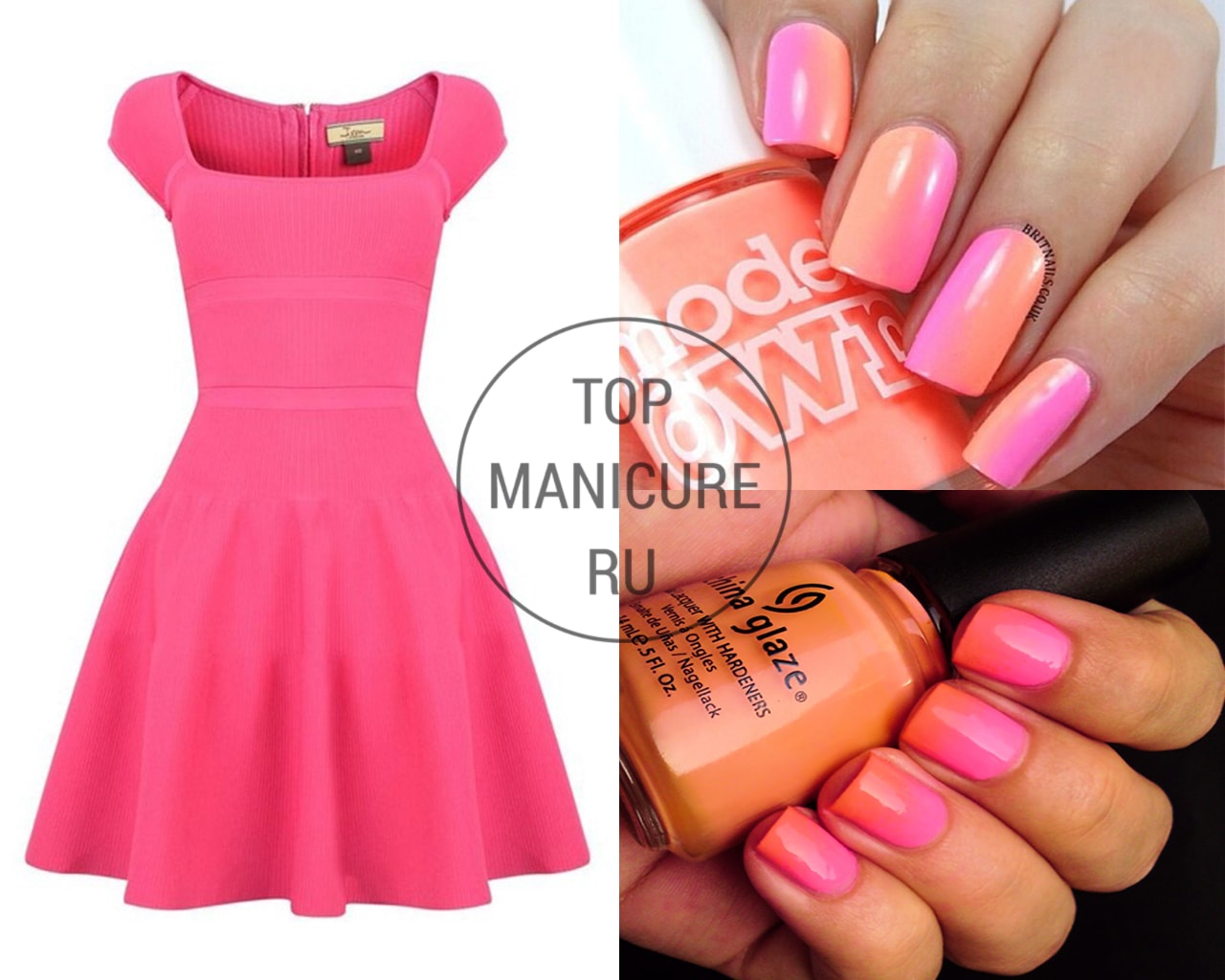 - Manucure sous une robe fuchsia