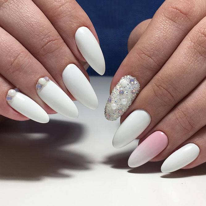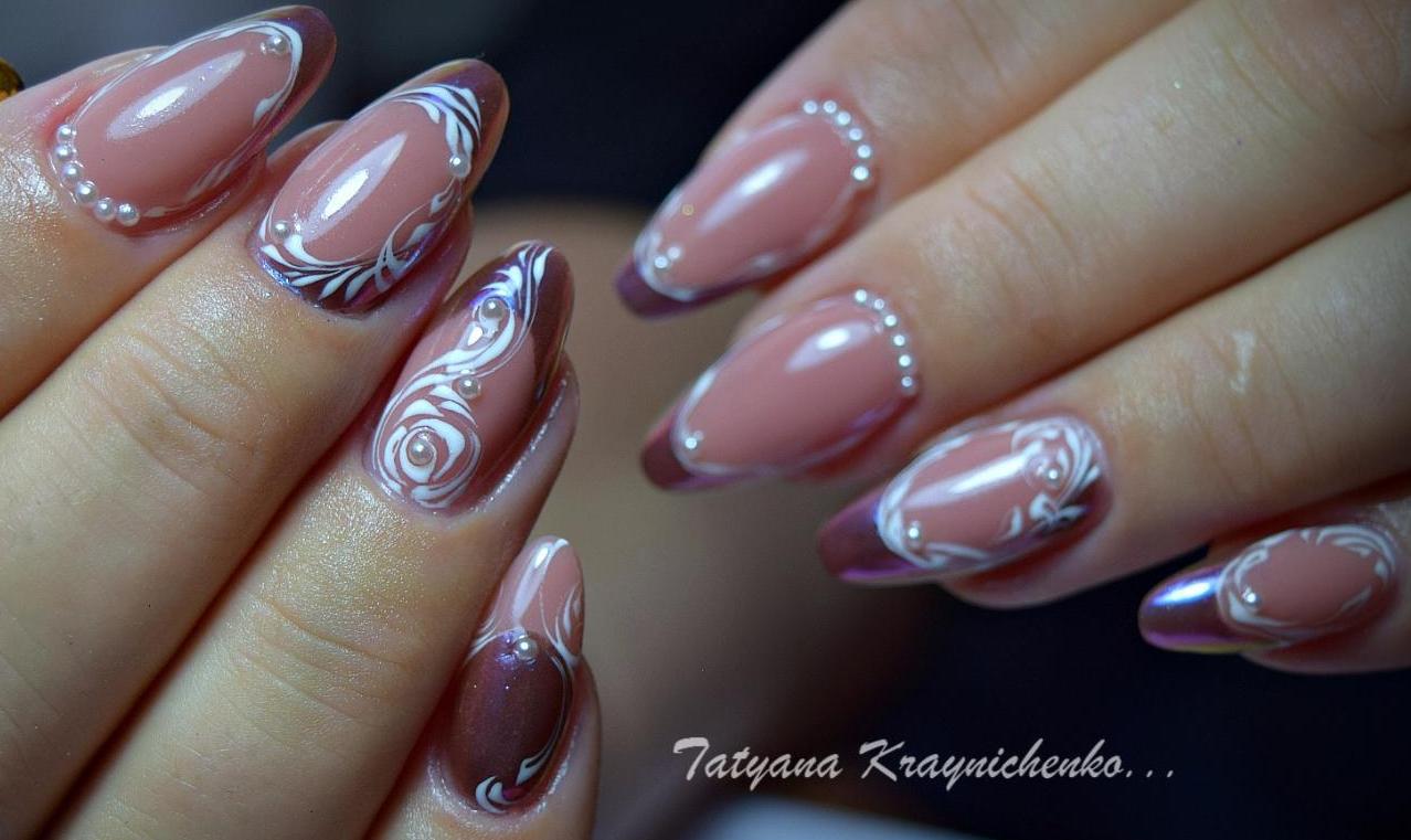 Souvent, les bouillons blancs sont utilisés pour la manucure de la future mariée. Avec l'aide d'eux, une manucure douce et incroyablement originale est créée. En principe, c’est ce dont la mariée a besoin. Les petits pains blancs et roses sont très mignons et tendres. Les bouillons blancs portent très souvent des ornements originaux sous forme de dentelle et de fleurs.