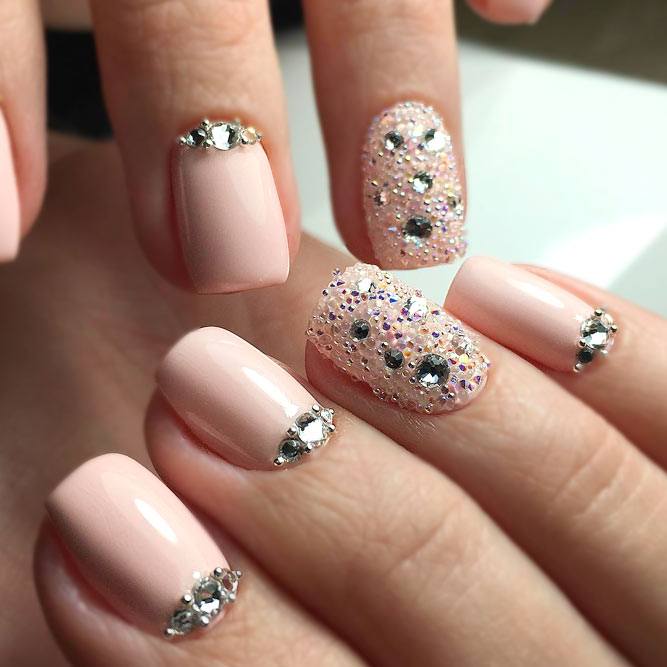 De nombreux maîtres aiment expérimenter et prendre des mesures assez imprévisibles lors du choix de bijoux pour les ongles féminins. L'une des options originales est de s'endormir complètement au doigt de l'annulaire avec de petits bouillons.Les bouillons transparents sont parfaits pour la literie et les enduits de laque rose. Cette option peut être utilisée à la fois pour les célébrations et pour l’arc de tous les jours. Avec l'aide de bouillons transparents, n'importe quelle beauté peut donner à son image un aspect plutôt doux et décontracté.