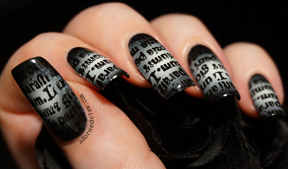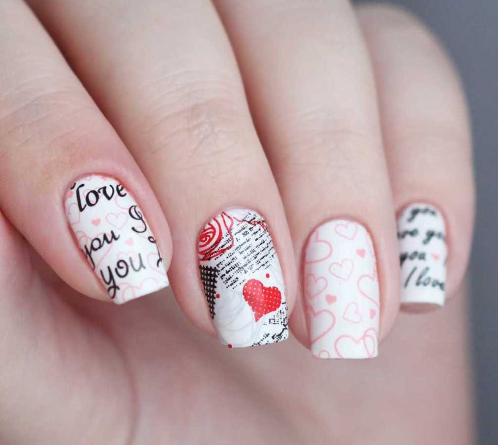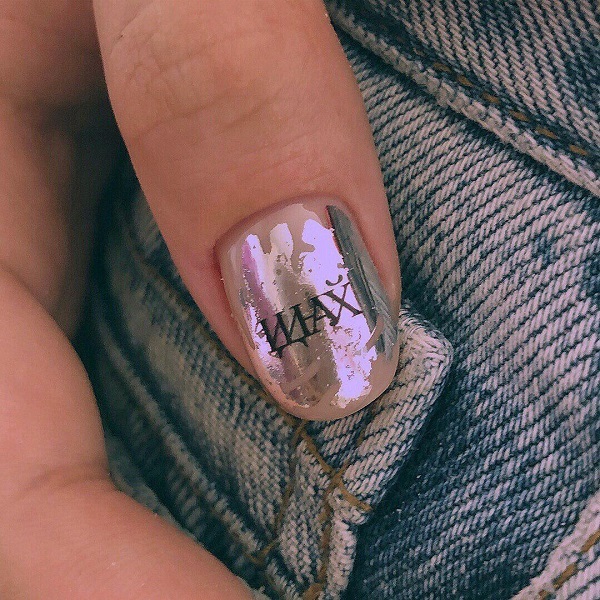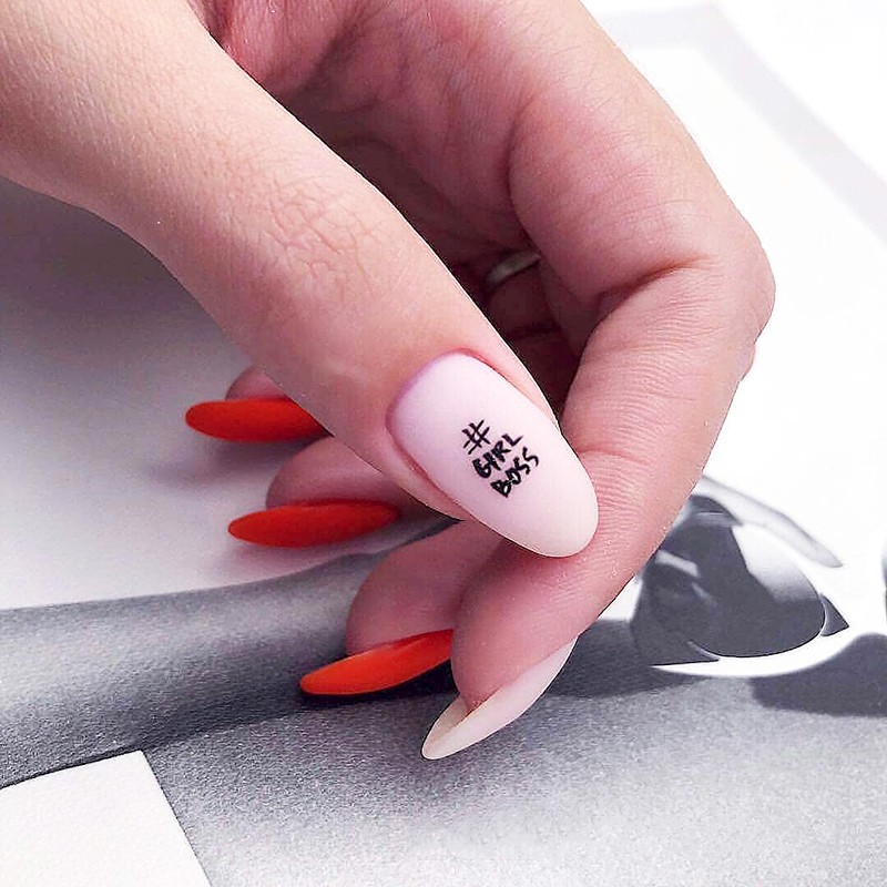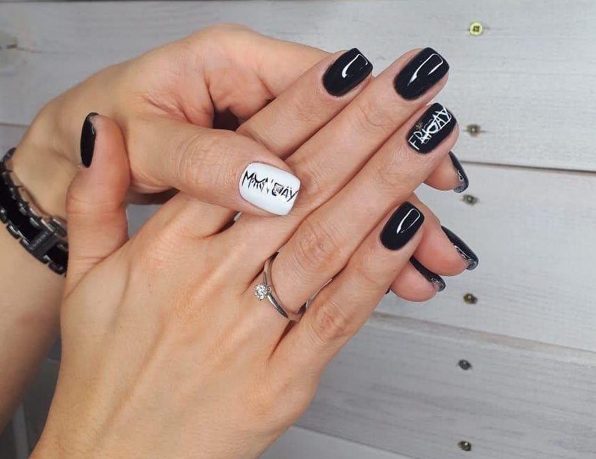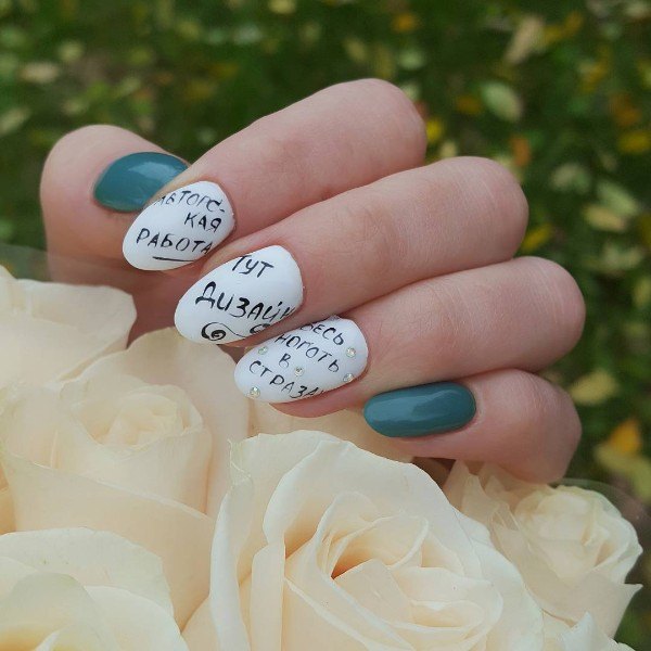 - Conception de manucure avec des inscriptions.