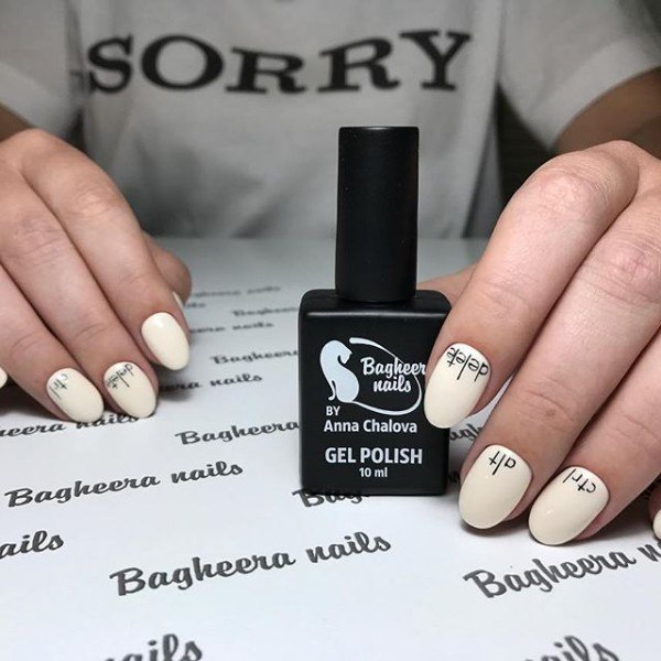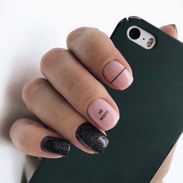 Un design inhabituel avec les phrases "voici des strass", "voici un dessin" et beaucoup plus est également devenu particulièrement populaire. Bien sûr, toutes les fashionistas n’aimeront pas une telle manucure. Mais pour ceux qui aiment le sens de l'humour et qui n'ont pas peur de paraître inhabituels, nous recommandons toujours d'essayer cette option.