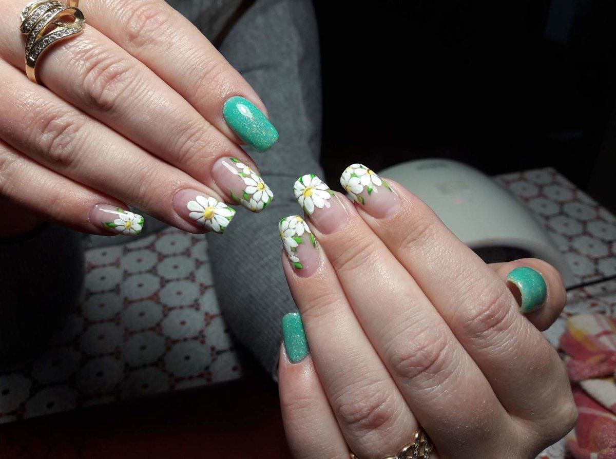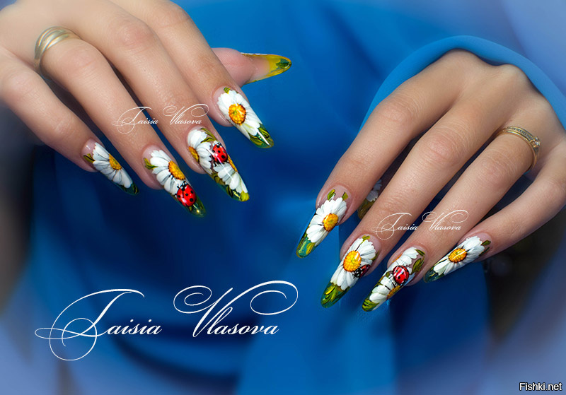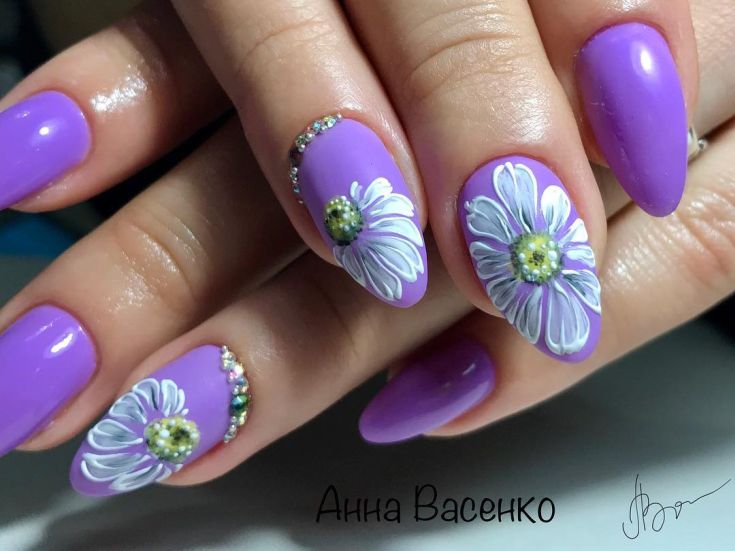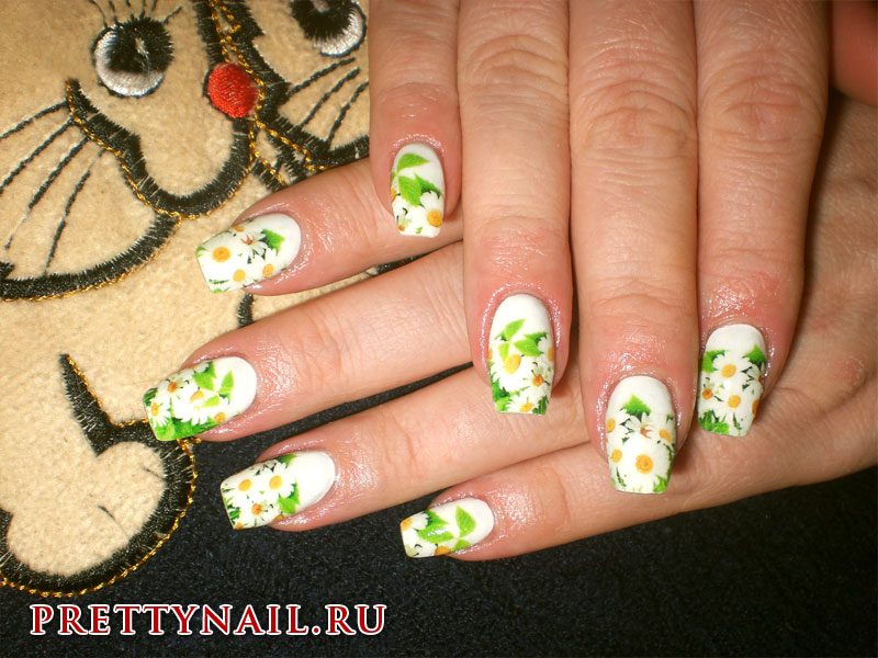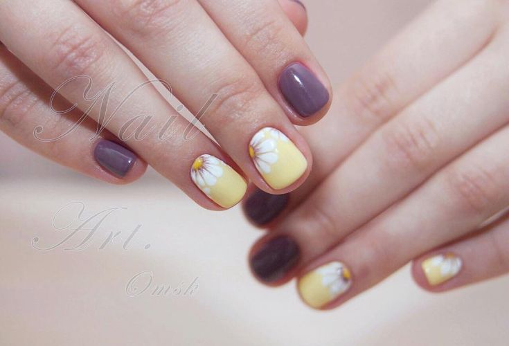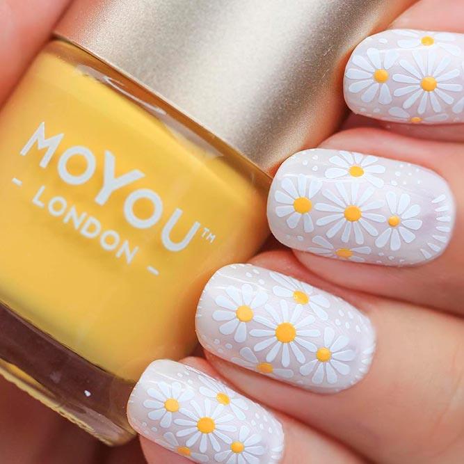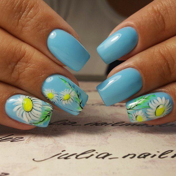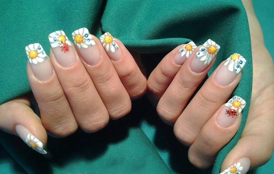 Manucure avec marguerites: Nail art intéressant sur la photo pour toutes les occasions