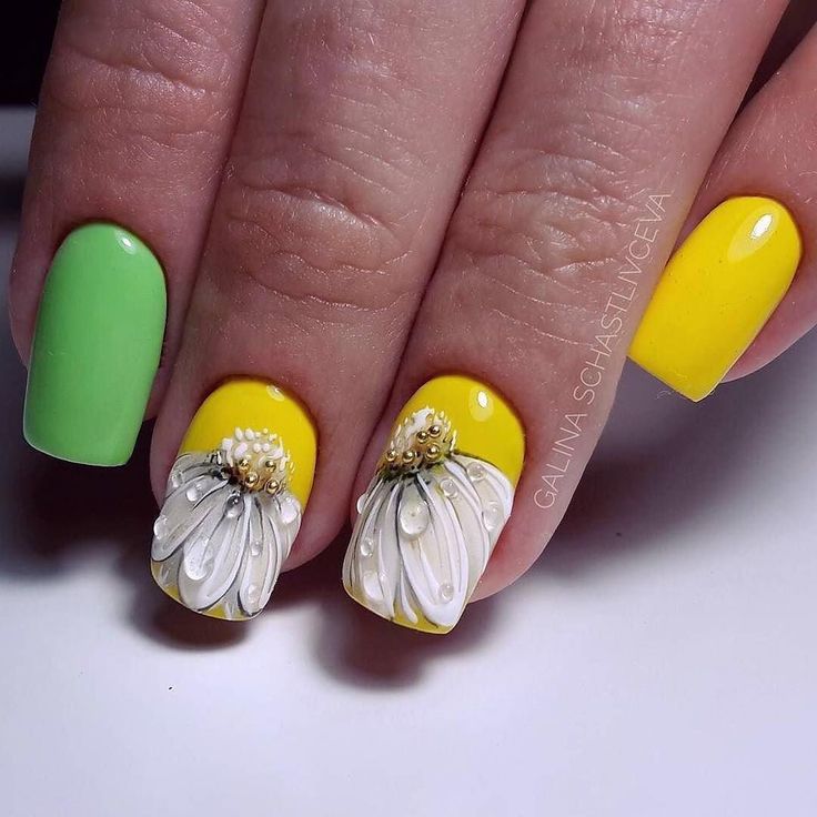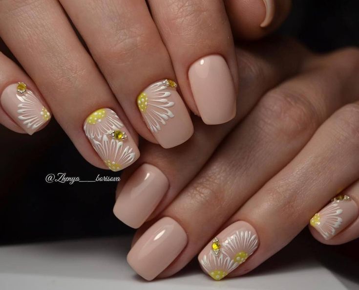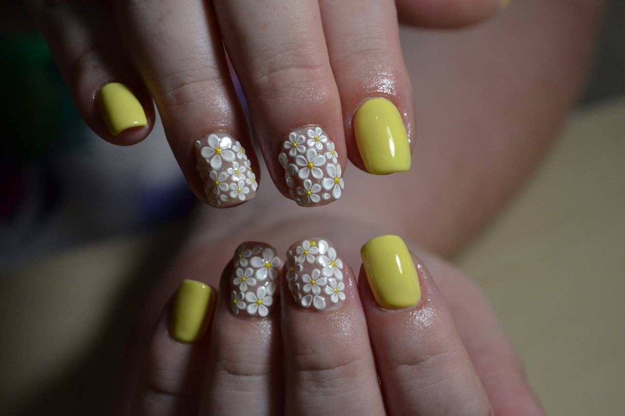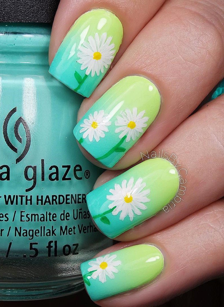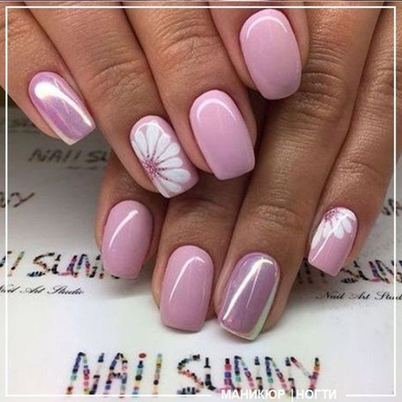Manucure avec marguerites: Nail art intéressant sur la photo pour toutes les occasions