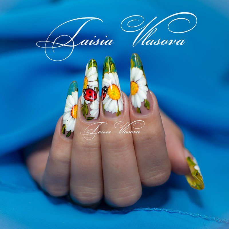 La conception de la manucure pour femme varie d'une saison à l'autre. Mais il existe des options pour le nail art qui sont restées pertinentes pendant plus d'un an. Voici un dessin des ongles avec des motifs floraux. Une manucure avec pâquerettes est l’une des solutions de manucure les plus pertinentes et les plus recherchées.