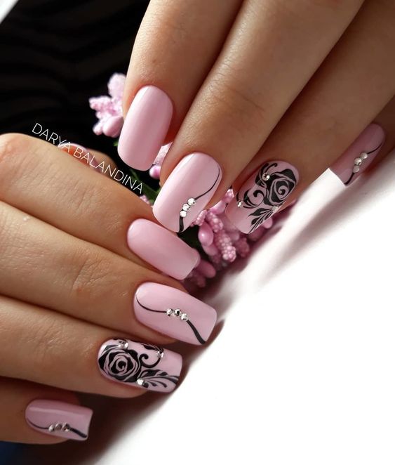 Manucure avec des roses: Idées de beau design + 100 photos