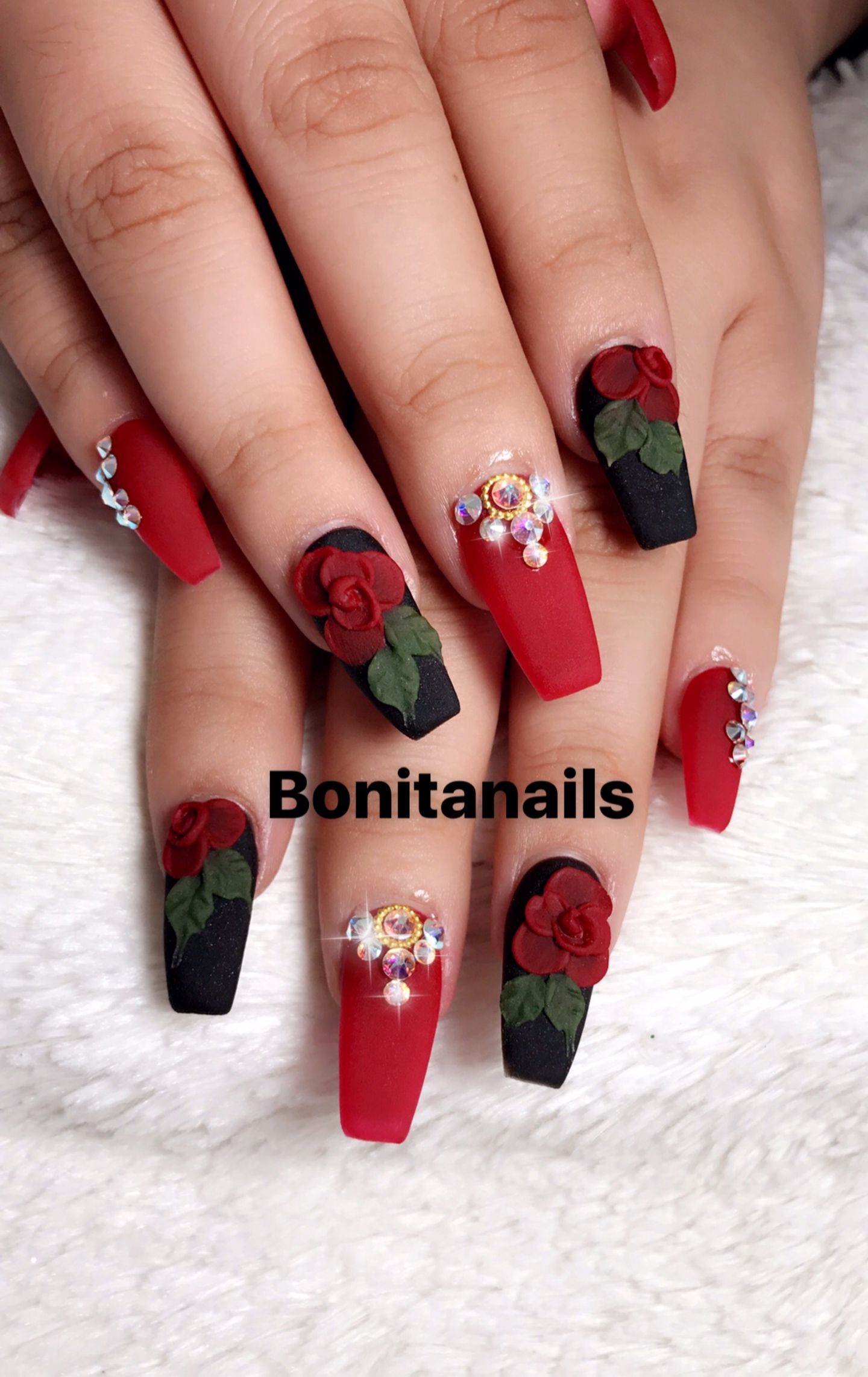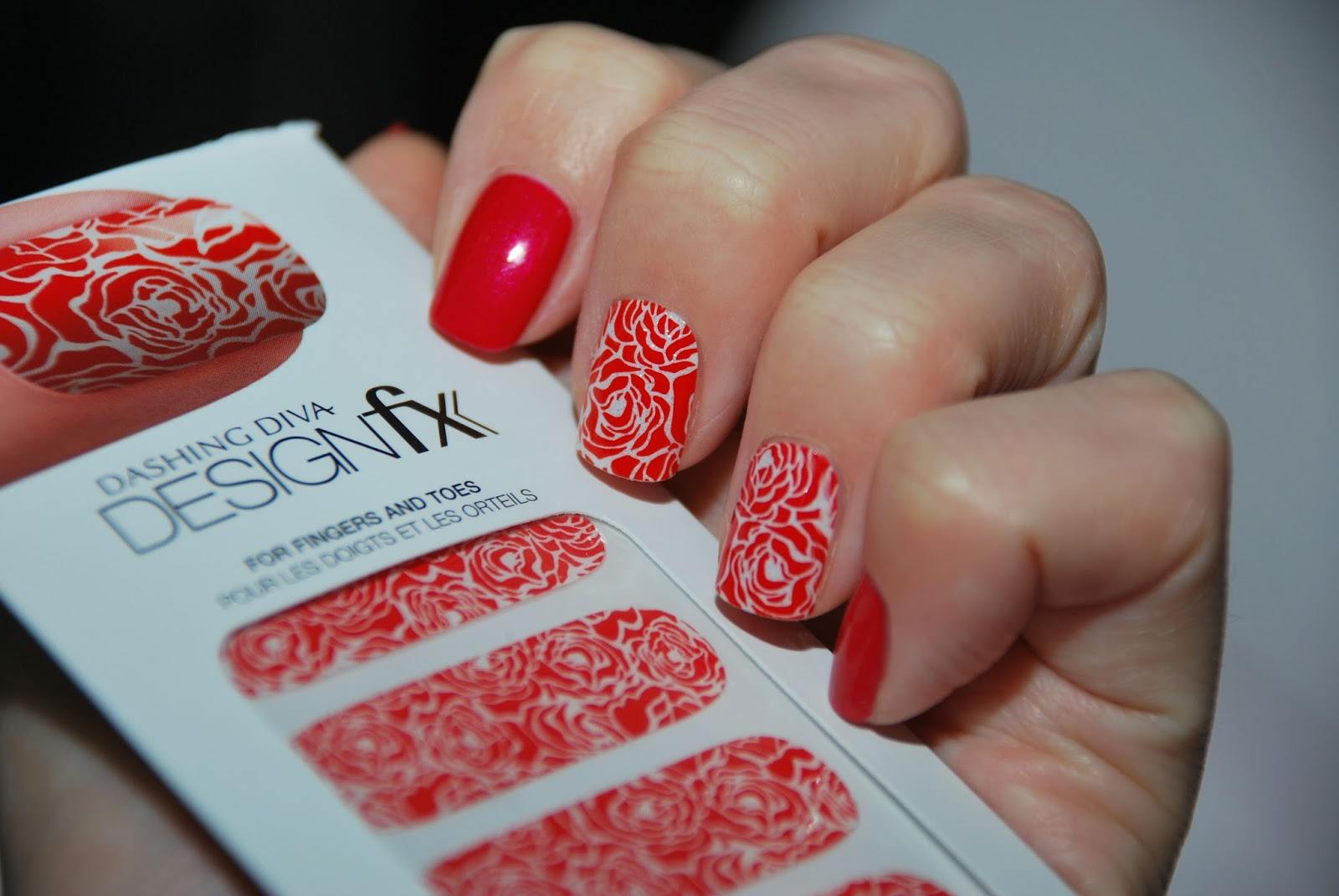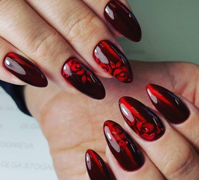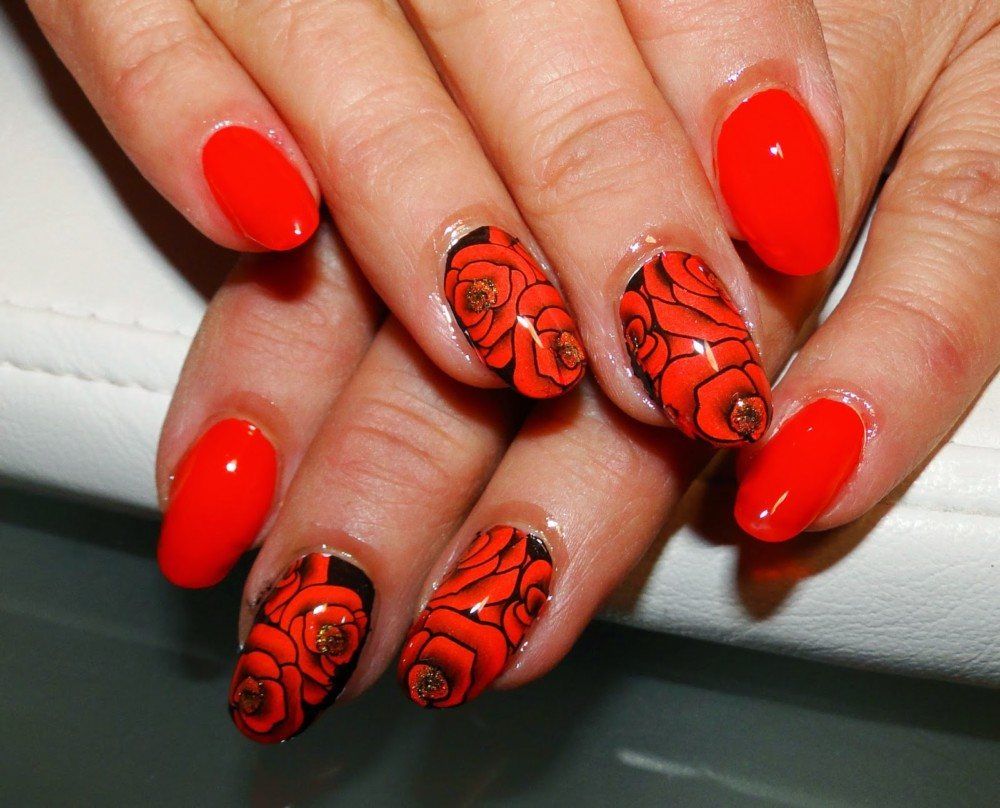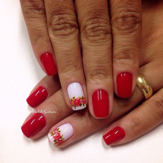 Manucure rouge avec des roses