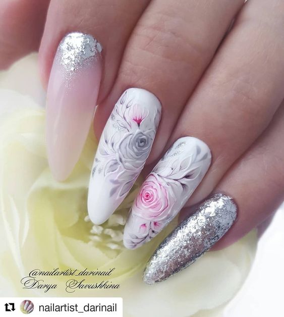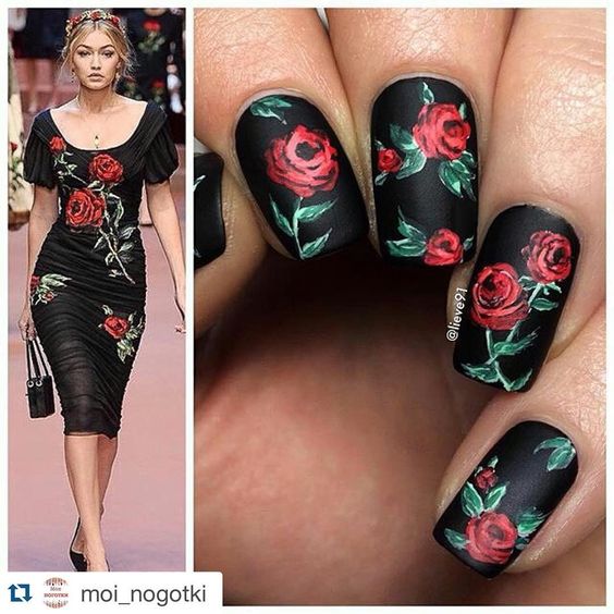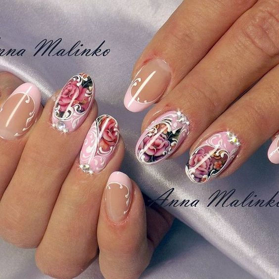 Lorsqu'elles visitent un pédicure et un manucure, la plupart des femmes choisissent des roses pour choisir un motif sur leurs ongles. Une fleur rose symbolise la tendresse, la passion, l'amour ainsi que l'inaccessibilité simultanée. L'interprétation dépend de la couleur et du bourgeon des roses. Lors du choix de ce type d’ongle, tout salon de beauté, ainsi qu’un maître travaillant à domicile, peut offrir de nombreuses combinaisons de couleurs et variétés de plantes enchanteurs.