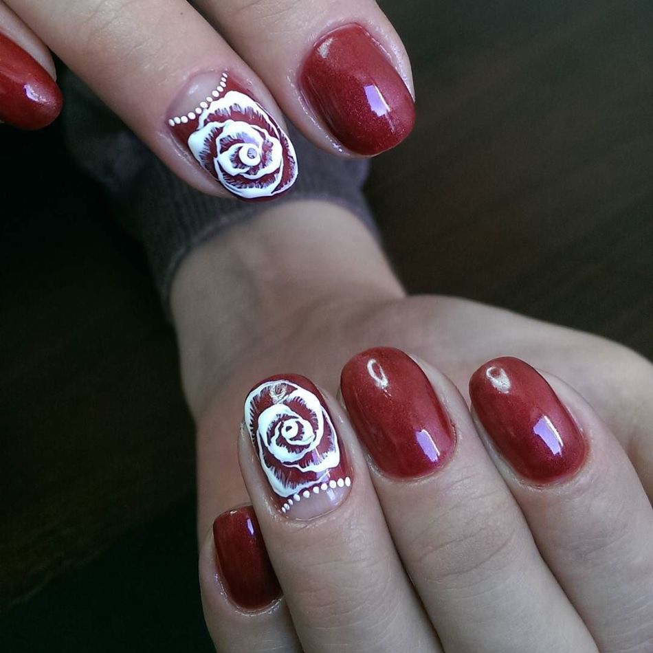 À ce jour, de nombreuses fashionistas préfèrent les manucures avec un gel lustrant. Cette option est très demandée en raison de sa polyvalence et de son aspect pratique. Avec le bon choix de couleur et de motif, cette manucure convient à la fois au milieu de travail et à la détente entre amis. L'ornement le plus courant et le plus recherché est une rose inaccessible, mais en même temps délicate. Lors du choix de cette image, le manucure est invité à faire preuve de talent et d’imagination, car il existe actuellement de nombreux matériaux et techniques auxiliaires.