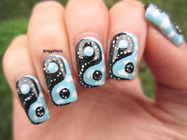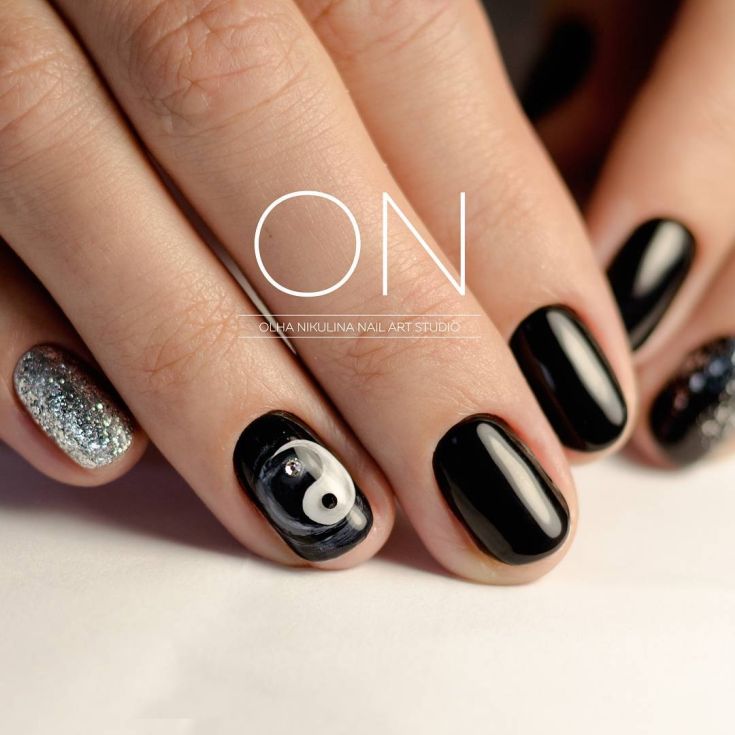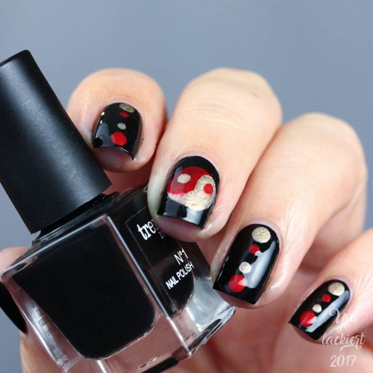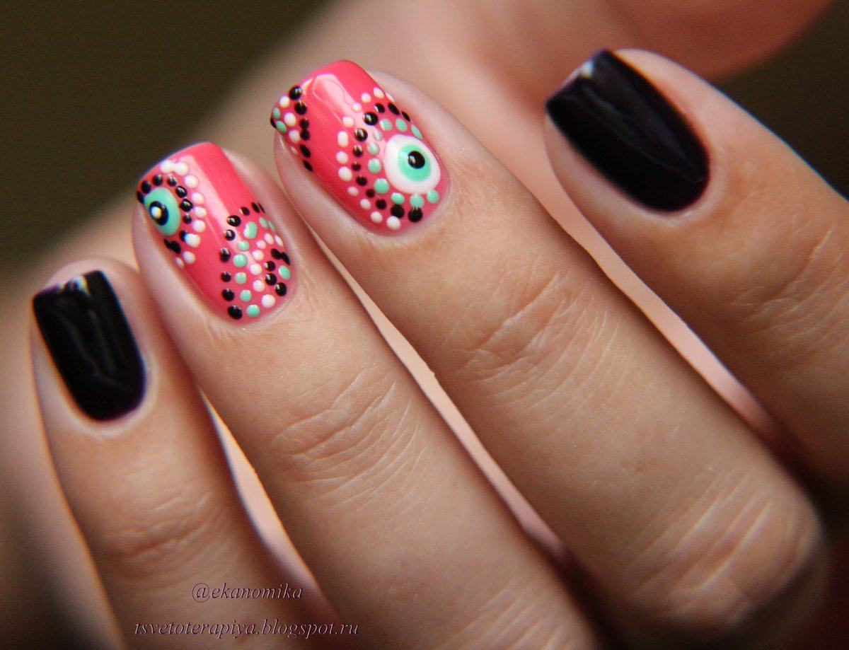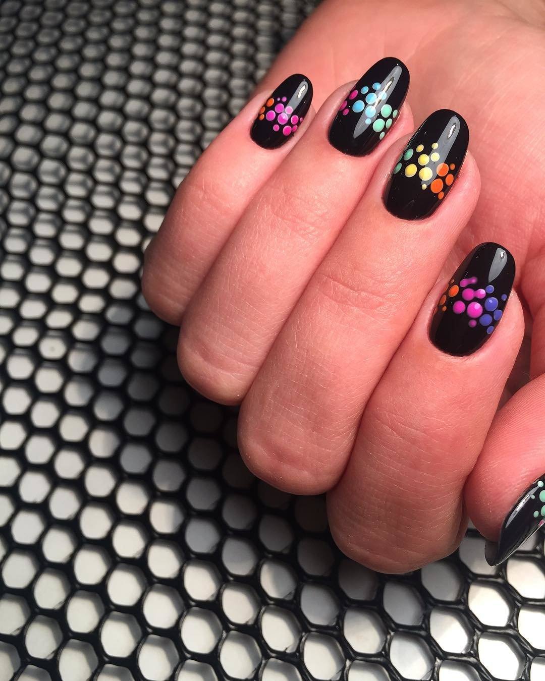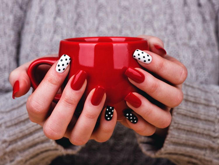 - Points noirs et blancs en manucure.