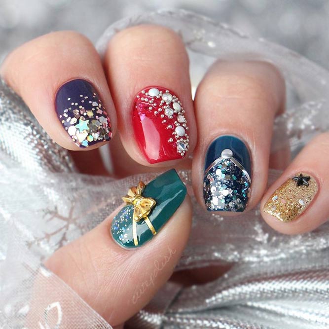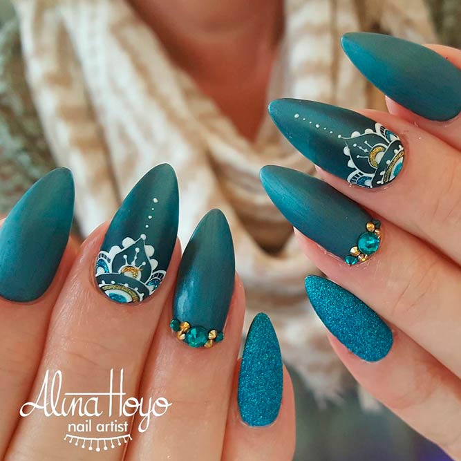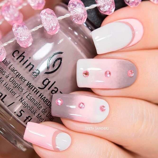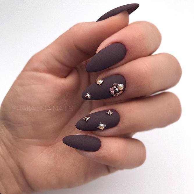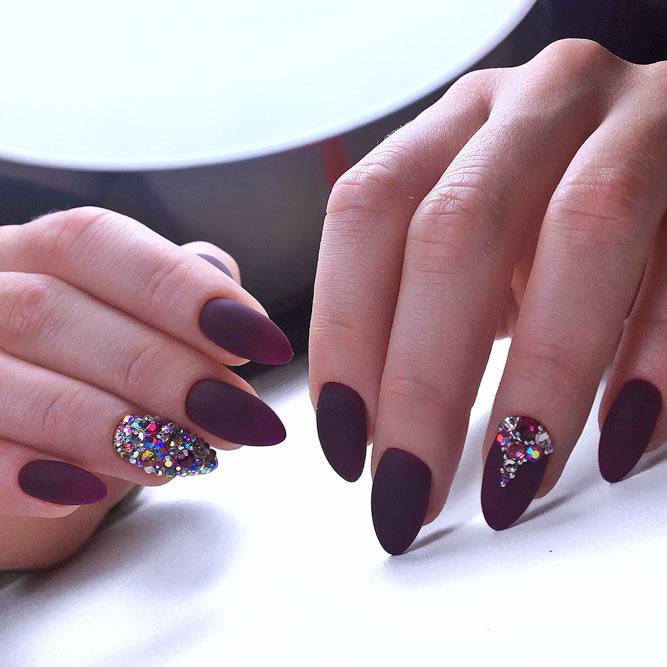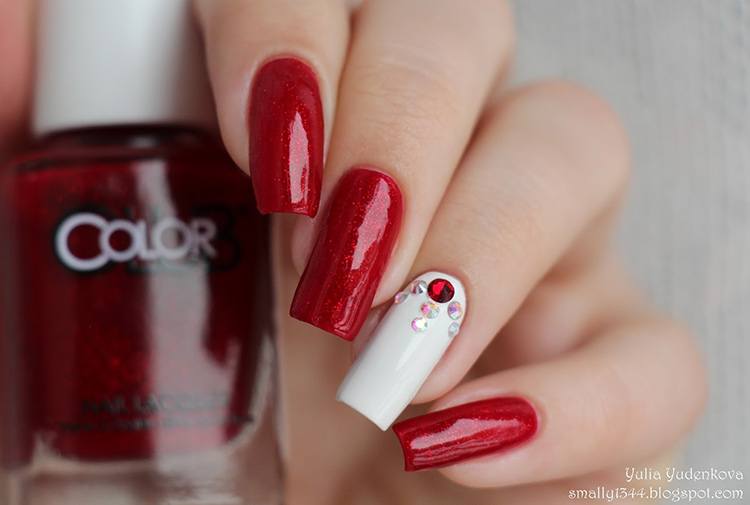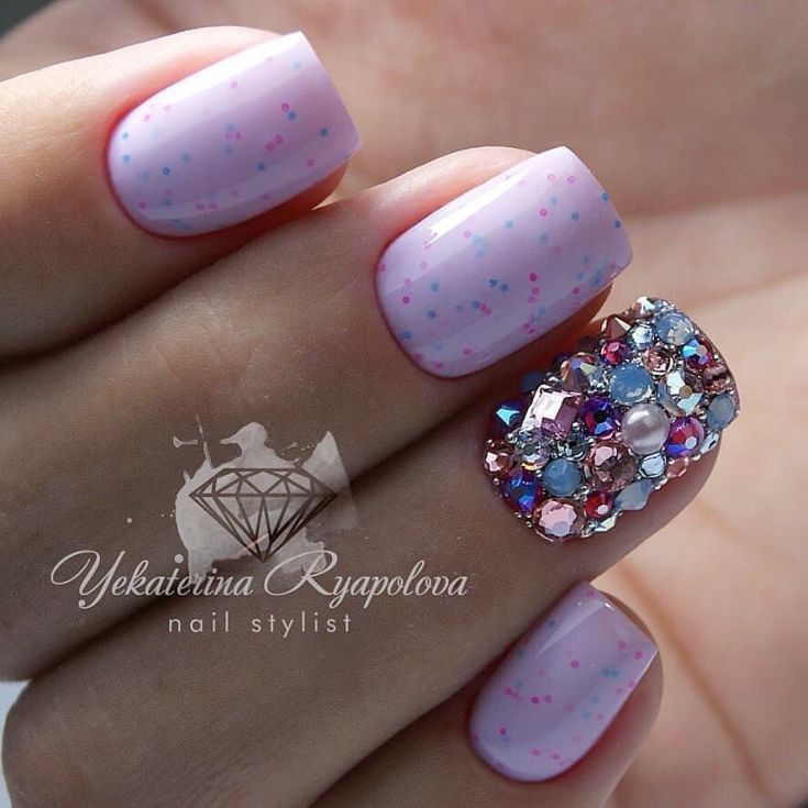 Une manucure avec des strass au lieu de points est magnifique et spectaculaire.