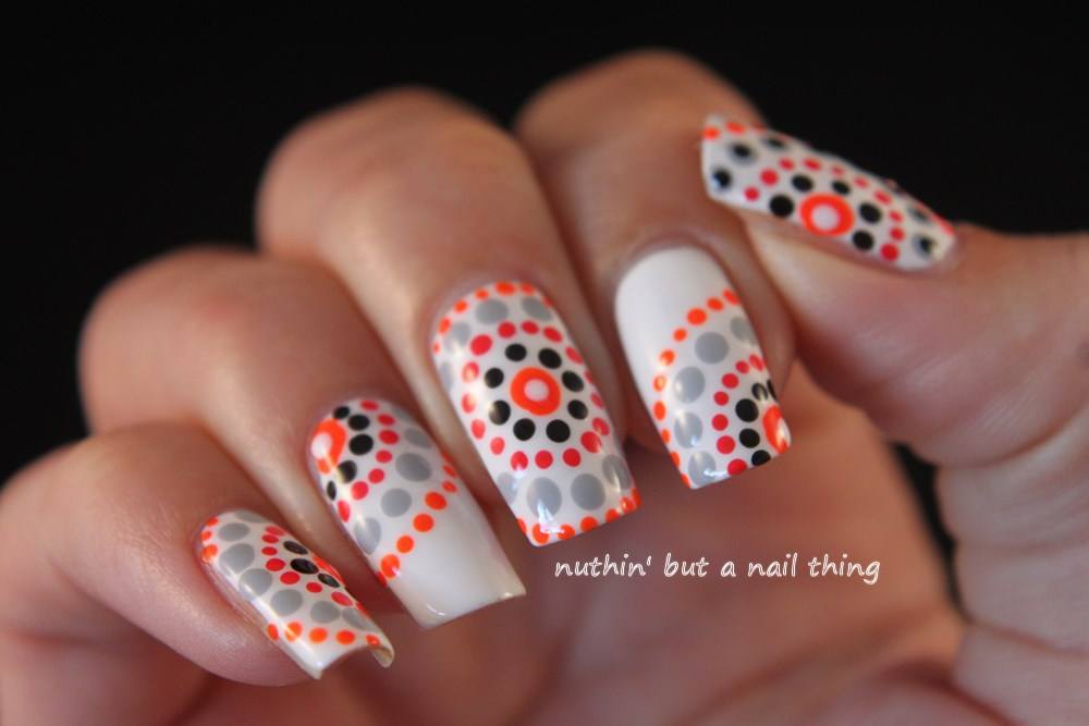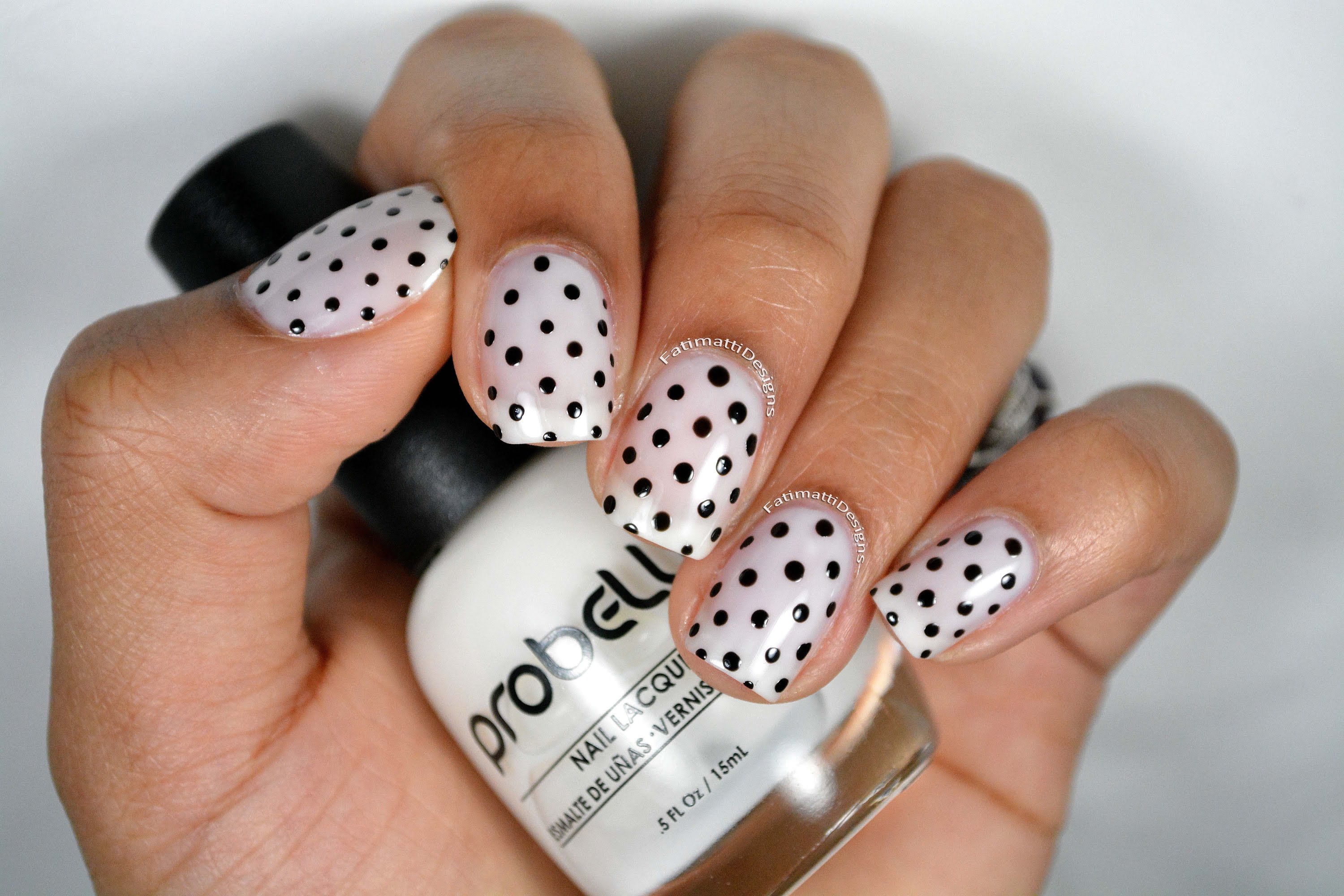 Points noirs et blancs en manucure.