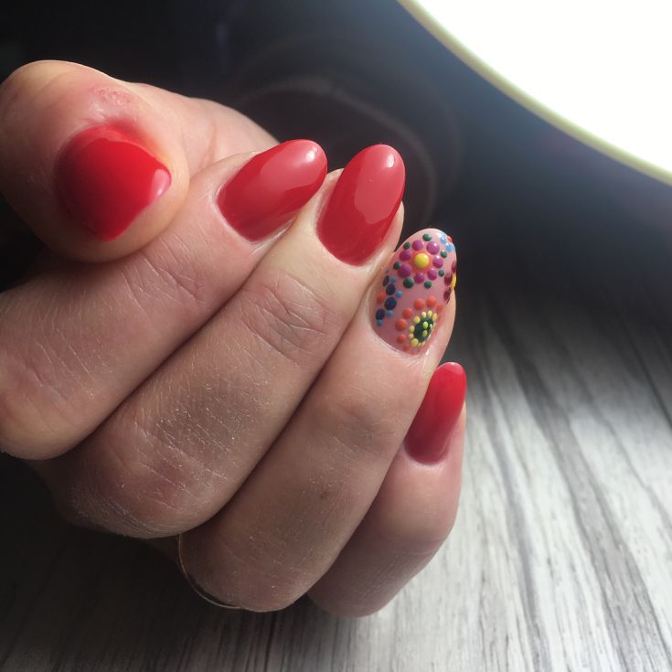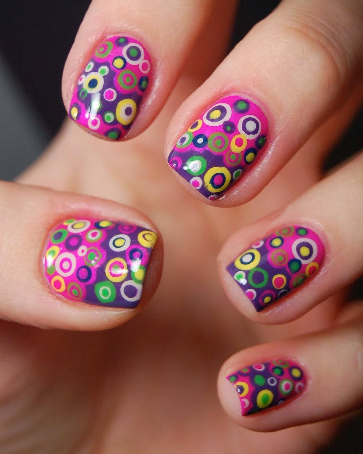 Manucure à pois multicolores
