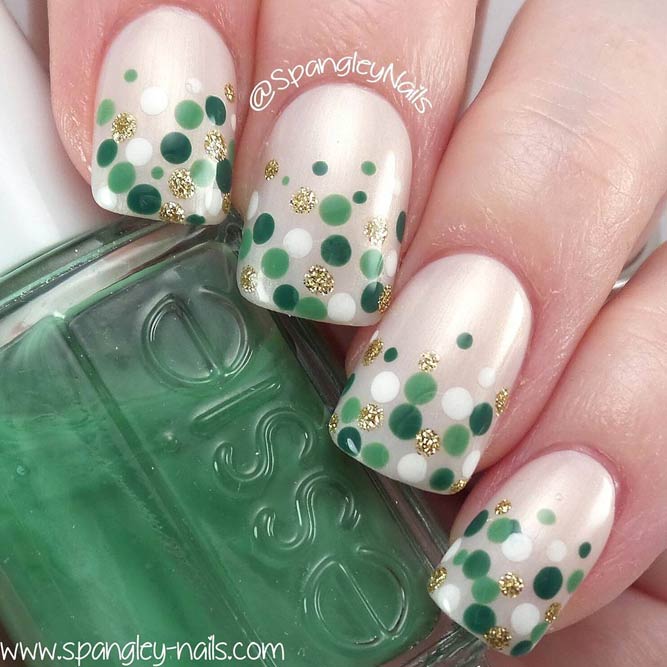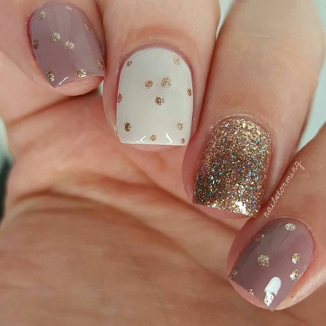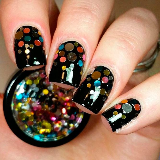 Une manucure à pois aura une allure festive et élégante si vous la créez à l'aide de camifubs. En utilisant ce décor dans la conception des ongles, vous obtiendrez une manucure magnifique et chic avec des points peints ou de petits confettis scintillants. Cette conception est souvent utilisée pour créer une manucure de fête, de soirée ou du nouvel an. Les confettis dans la conception des ongles peuvent être utilisés comme décor principal ou comme ajout brillant au motif à pois.