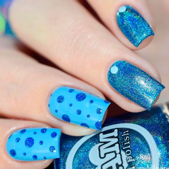 Une manucure à pois est parfaitement combinée avec des rayures et des cœurs. Cela crée un ongle chic pour créer un look de tous les jours et de fête. Cette conception de manucure est douce et romantique. En outre, la combinaison de points et de rayures convient parfaitement à une manucure de style plage ou mer. Une telle combinaison est possible dans le style du minimalisme. Mais avec l’ajout de strass et de pierres, la manucure prend un aspect festif.