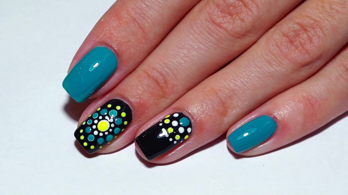 - Nail art avec des points et une feuille.