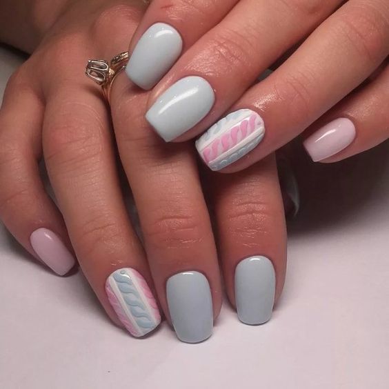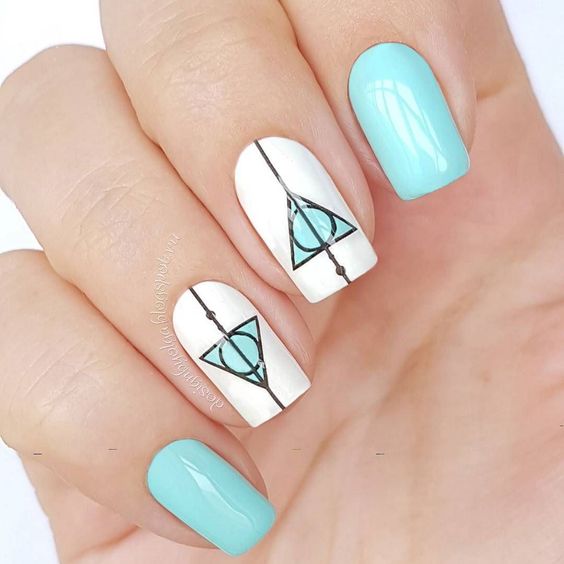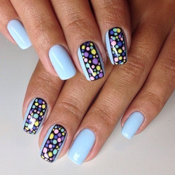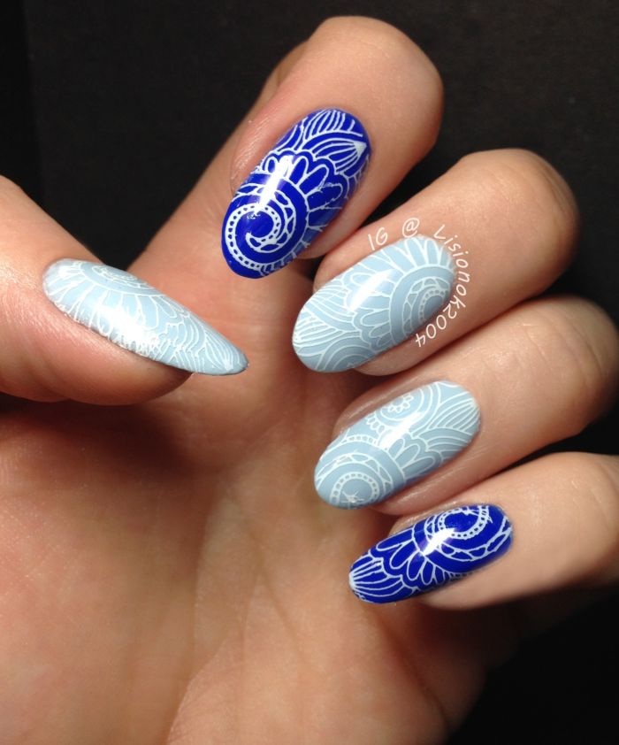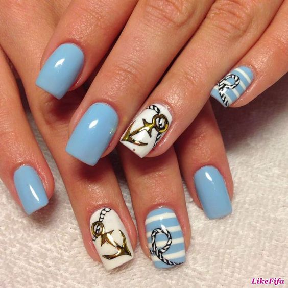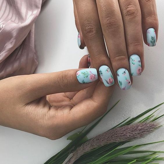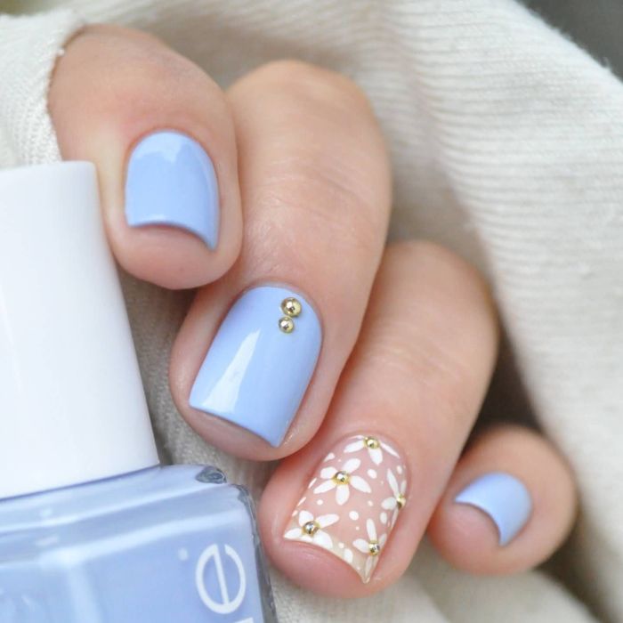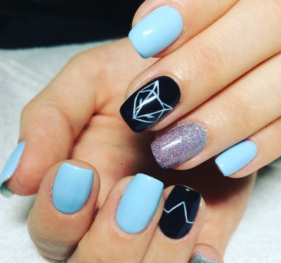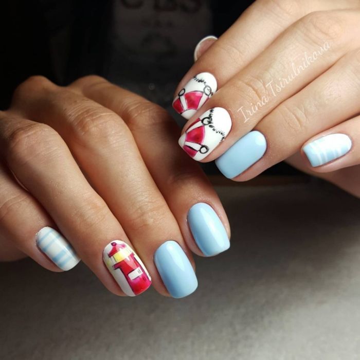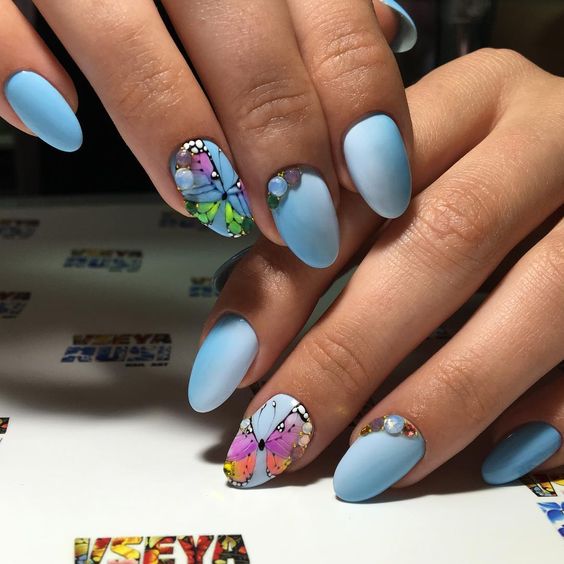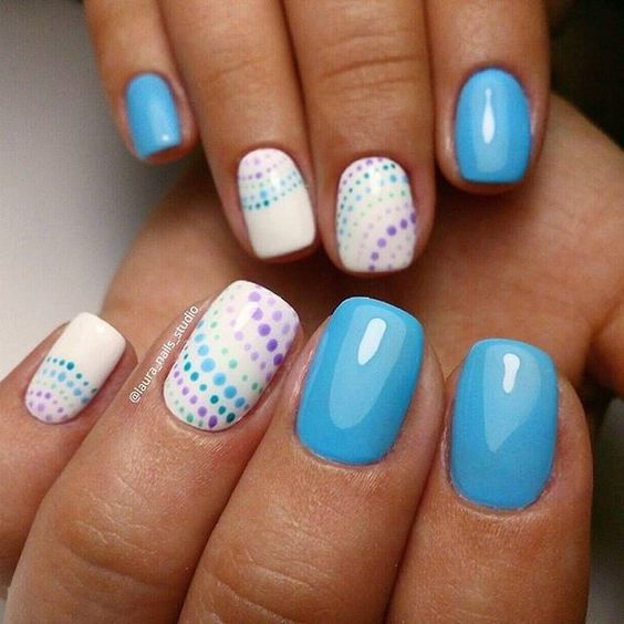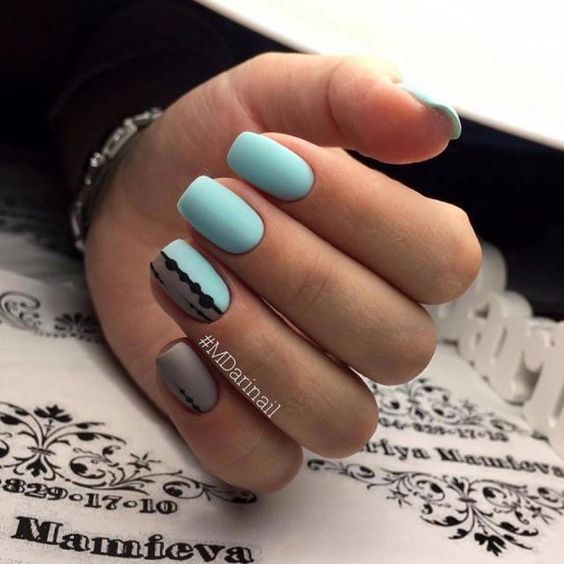 Et bien sûr, dessiner sur les ongles est toujours vrai. Qu'il s'agisse d'un petit motif ou d'une idée plus complexe, cela a toujours l'air attrayant. De plus, le bleu est une excellente option pour créer un fond sur les ongles.