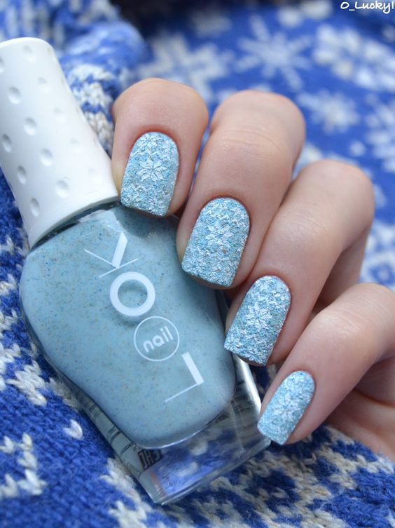 Souvent, de nombreuses personnes associent la couleur bleue à la conception des ongles d’été. Néanmoins, il s'agit d'une excellente option pour créer un dessin original et élégant de nouvelle année. De beaux flocons de neige, des arbres de Noël, des cadeaux avec des rubans - ce n'est qu'une petite partie de ce qui peut être représenté sur les ongles en l'honneur du Nouvel An à venir.