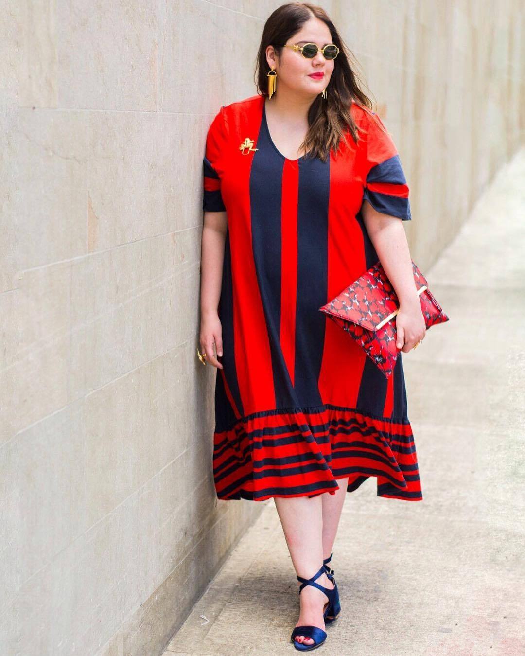 Lorsque vous choisissez une robe pour une «femme appétissante», vous ne devriez pas choisir de tricots fins, car elle est en mesure de souligner toutes les lacunes, attirant ainsi l'attention des membres de la société environnants. Pour celles qui tentent de cacher légèrement leurs seins luxuriants, il vaut la peine de choisir un style qui a un motif vertical. En plus, vous pouvez utiliser un foulard en mousseline de soie légère. Les filles avec un gros ventre devraient essayer une robe - un peignoir ou une basma. Ainsi, votre zone de problème s’allongera. Dans ce cas, s’il est nécessaire de souligner le sein à l’image d’une fille, il convient d’utiliser des styles vestimentaires, où le décolleté joue le rôle principal. Pour une image plus raffinée et élégante, privilégiez le manchon situé juste sous le coude (trois quarts).