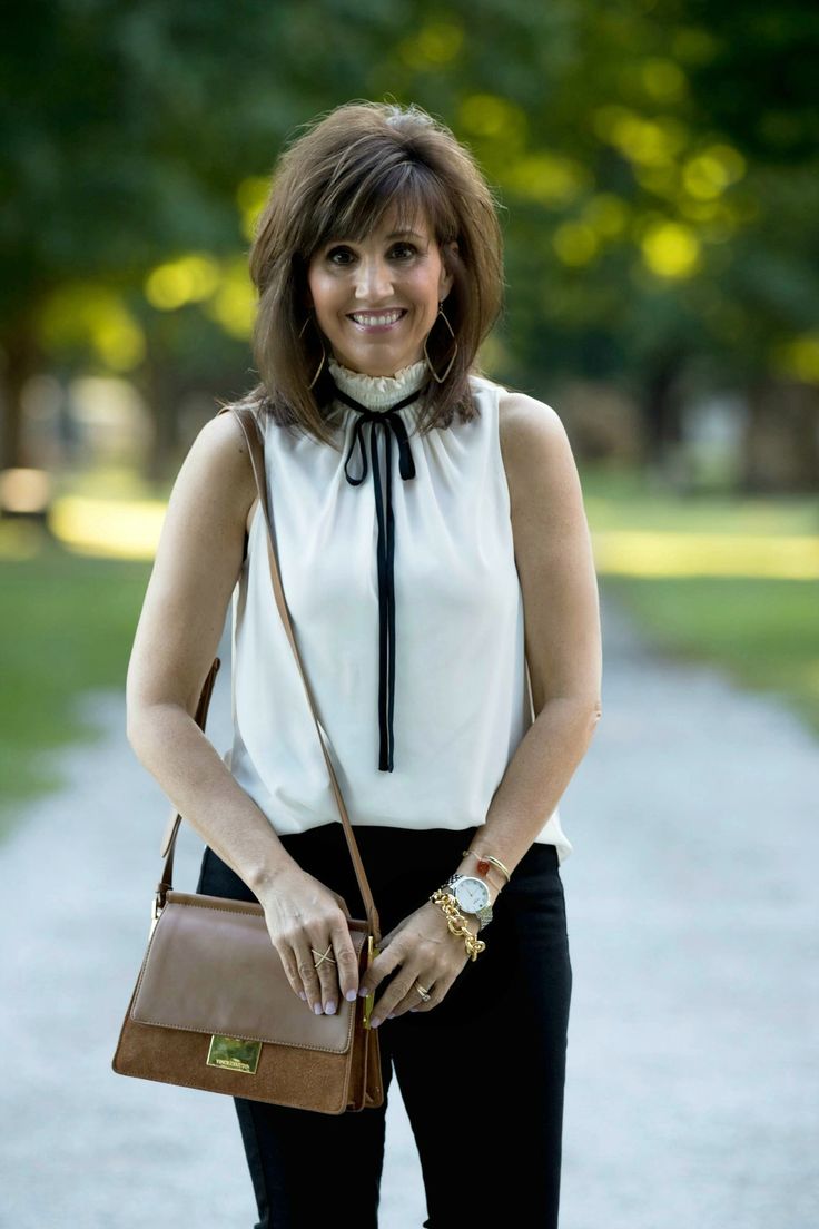 Lorsque vous choisissez un chemisier basique, faites attention au matériau dans lequel il est fabriqué. Les modèles en tissus transparents, les femmes de 50 ans ne sont pas appropriés. Les chemises de style pour hommes ont fière allure avec un gilet et divers accessoires accrocheurs.