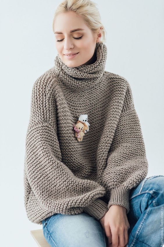 Pendant la saison froide, nous suggérons de porter une attention particulière aux larges et larges tricots grossiers. Grâce à une telle coupe, il donne à l'image une fragilité et une tendresse particulières. Les produits de cols volumétriques seront également pertinents. C'est une excellente solution pour les journées fraîches d'automne.