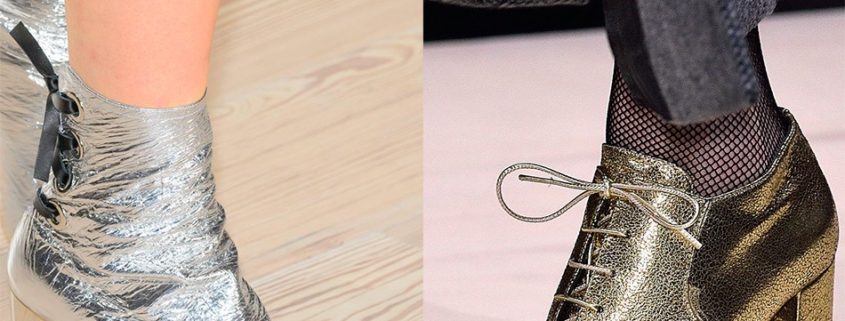 Si vous portez des bottines brillantes, vous pouvez facilement supprimer une humeur triste. La brillance cosmique est une autre nouveauté de cette saison. Modèles argentés de la collection de la marque américaine “TOM FORD”, un cuir verni associé à des paillettes sera à votre goût! Si vous voulez attirer les regards envieux des autres, procurez-vous des bottines brillantes à la mode!