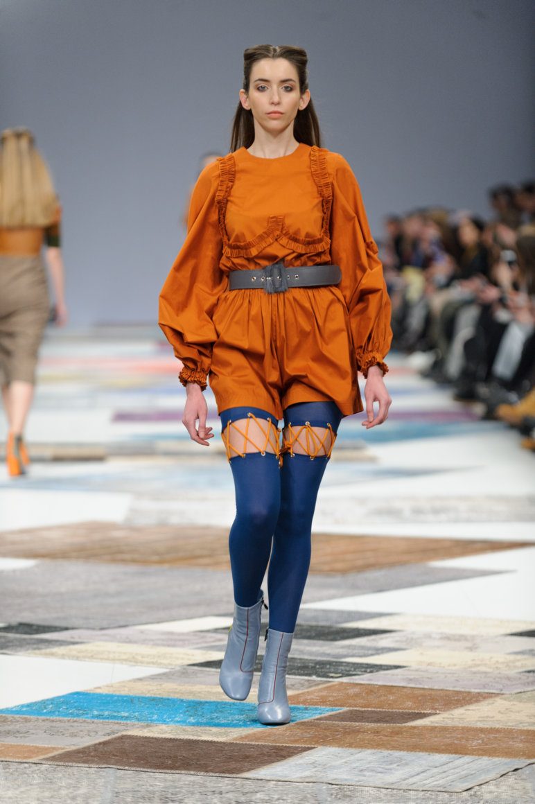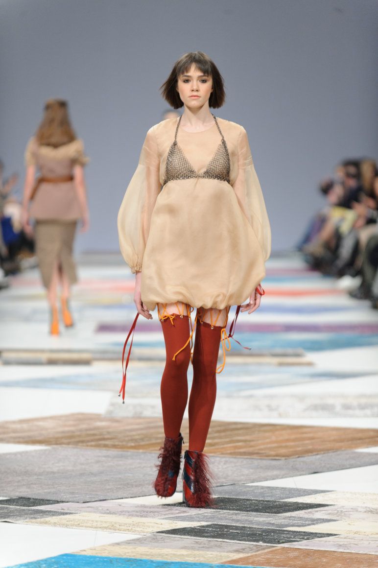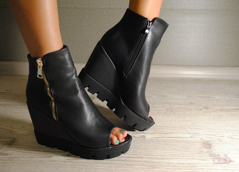 Les modèles de bottines à bout ouvert sont très inhabituels et féminins. De telles chaussures ont été démontrées par la marque de mode “JEAN GRITSFELDT”. La section des orteils ouverts donne féminité et luxe.
