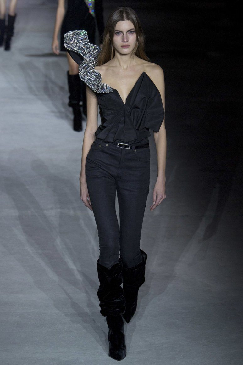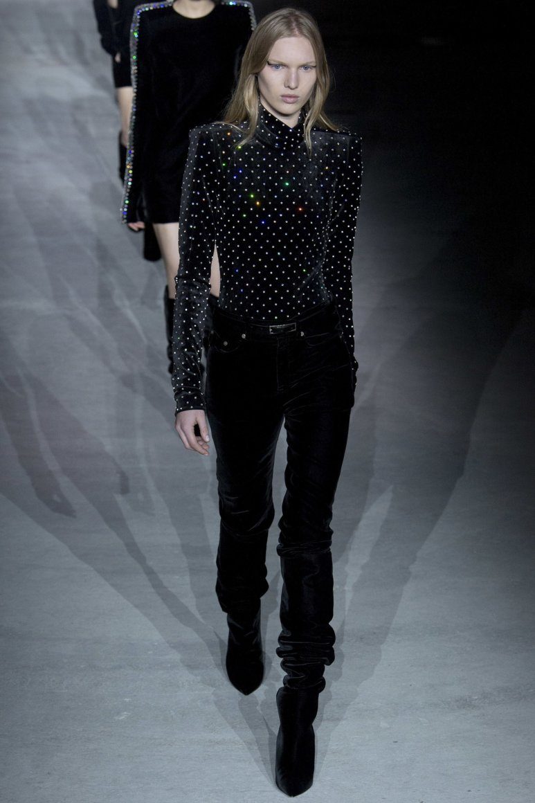 Les modèles féminins de pantalons noirs sont une bonne idée si vous avez besoin d'un look élégant et sobre. Cela est prouvé par les exemples de pantalons bohémiens originaux des marques célèbres «RALPH LAUREN» d'Amérique, «TAMUNA INGOROKVA» de Géorgie, «ISABEL MARANT». «SAINT LAURENT», une marque d'élite de la haute couture française, a présenté les modèles en velours noir. Les créateurs de la marque américaine «WOLK MORAIS» proposent des pantalons classiques noirs pour femmes, car, selon les stylistes, les pantalons modernes ne cachent pas les jambes.