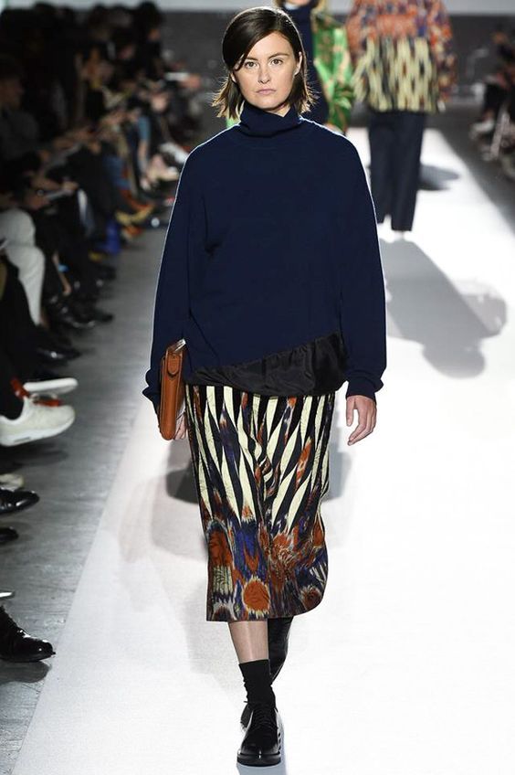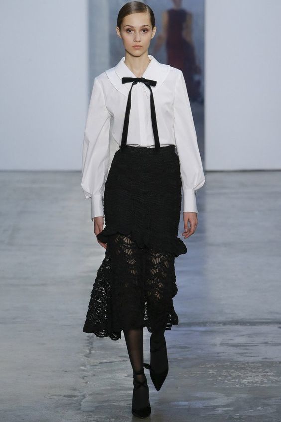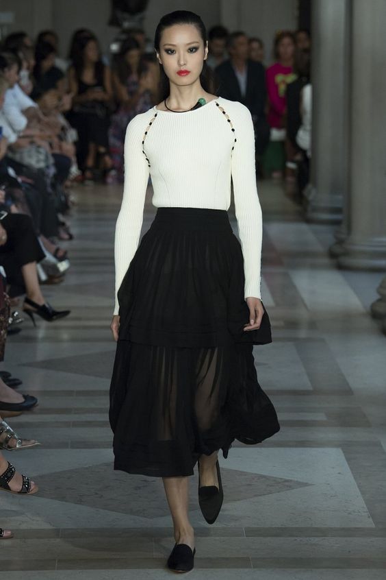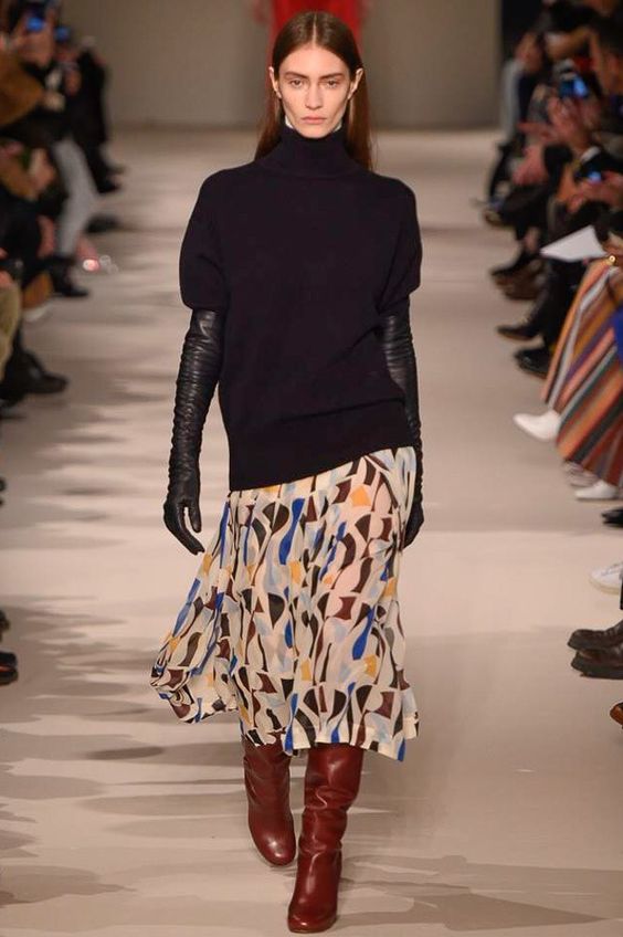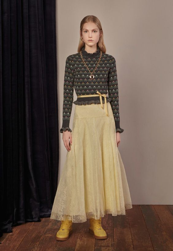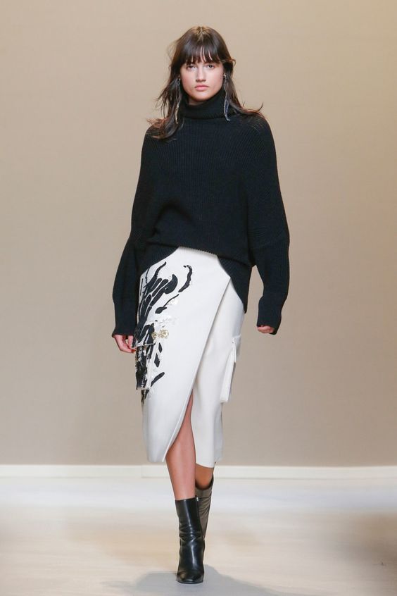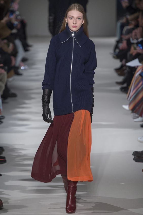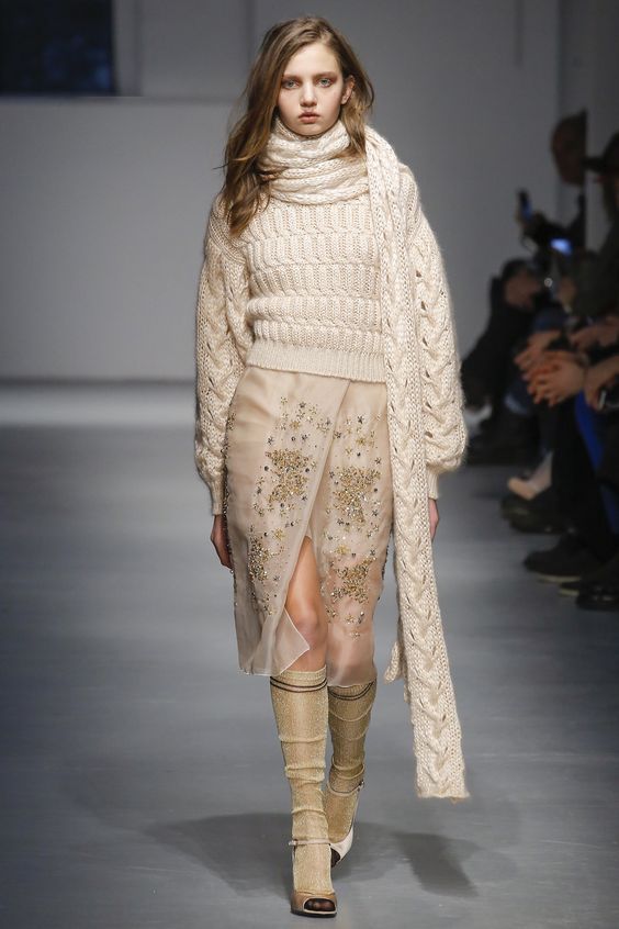 Bien entendu, on ne peut s’empêcher de s’étonner de la présence de jupes en tissus translucides dans la collection de la saison automne-hiver. Néanmoins, les concepteurs prétendent que vous pouvez les porter par n'importe quel temps. Il vous suffit de les combiner avec des collants étroits ou même des pantalons.