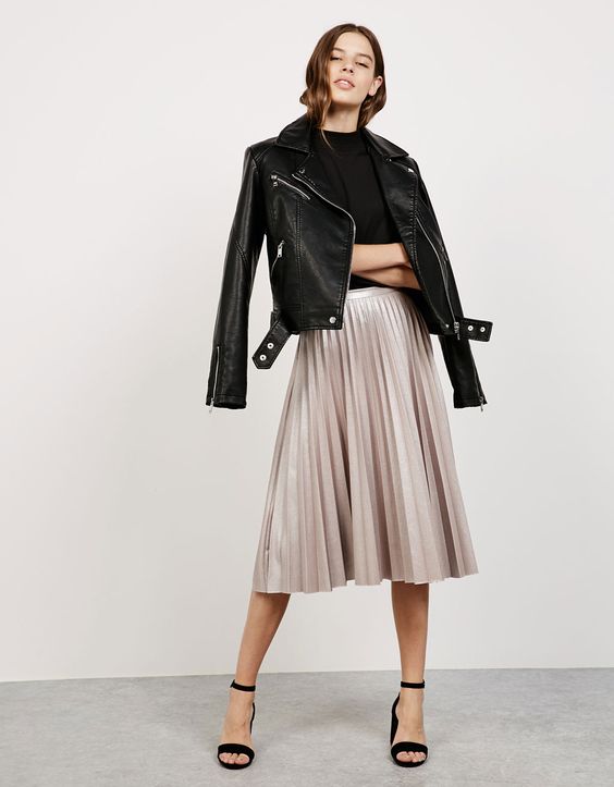 Cette option est idéale pour la vie quotidienne. Cependant, si vous avez acheté une jupe faite de tissus nobles et légers, ce sera une option idéale pour une soirée.