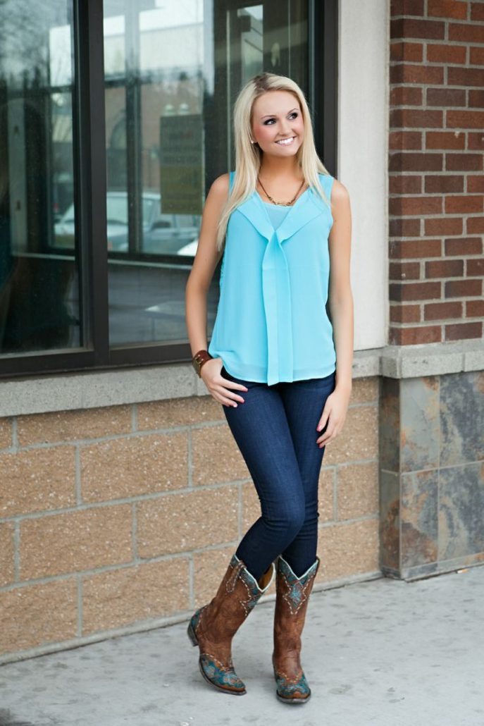 Les jeans skinny restent pertinents. Skinny est maintenant grand et ressemble plus à un modèle de cow-boy. L'avantage de ce modèle était la possibilité de cacher les excès de volume à la taille.