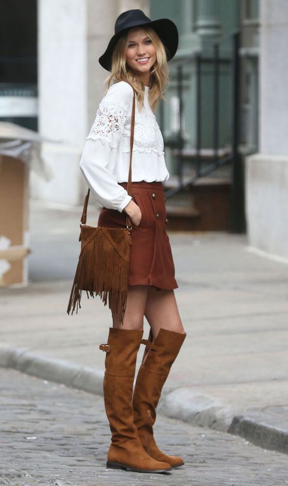 Cependant, en choisissant des bottes, vous devez bien comprendre comment vous allez les combiner. Après tout, l'image ne doit en aucun cas être vulgaire. Les stylistes suggèrent de combiner ces bottes avec des jupes, des robes au genou ou une longueur midi. Ils ont également fière allure avec des pantalons skinny.
