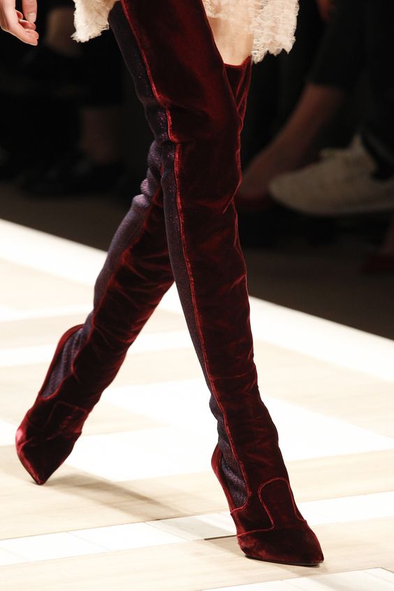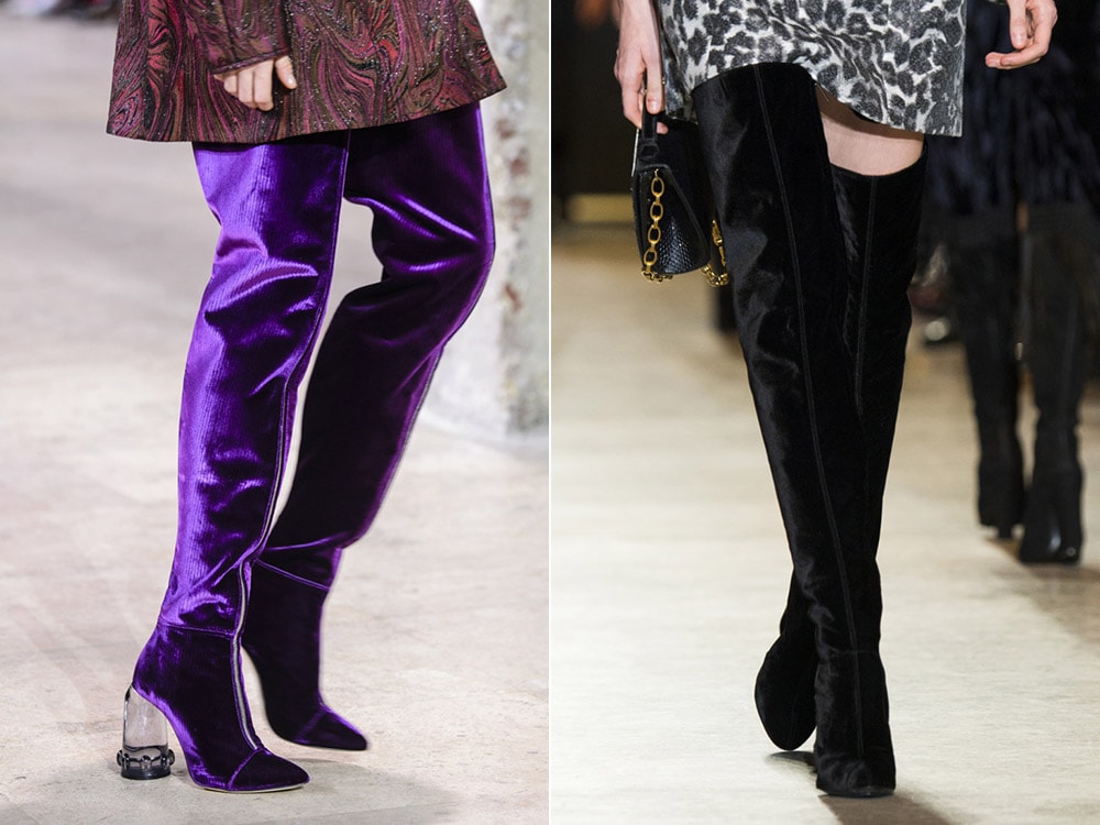 Malgré leur impraticabilité, les bottes de velours seront les plus en vogue pendant la saison froide. En raison de sa texture inhabituelle, un tel matériau semble très coûteux et d’une beauté incroyable. Par conséquent, ces chaussures sont parfaits même pour assister à des occasions spéciales.