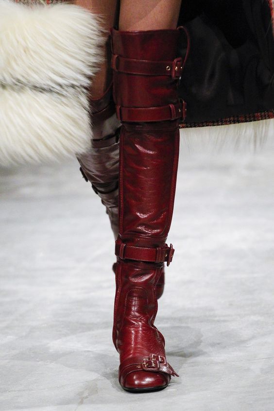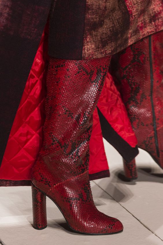 Pendant la saison froide, les bottes dans une grande variété de nuances de rouge sont particulièrement populaires. Il peut s'agir de tons plus sombres ou plus clairs. Nous vous recommandons de porter une attention particulière aux chaussures en bordeaux et rouge classique. On pense qu'ils sont les plus polyvalents et qu'ils se combinent le mieux avec différentes choses.